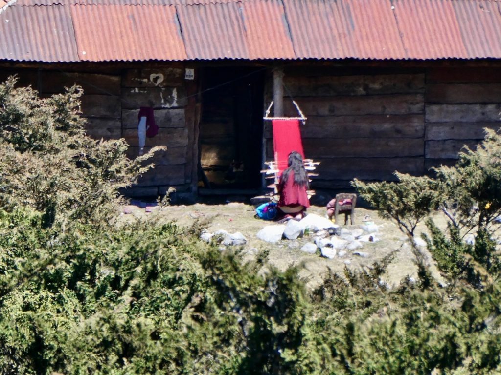 Nach einer erholsamen ruhigen Nacht und einer kleinen Gipfelerstürmung fahren wir weiter in die Hochebene der Cuchumatanes. Wir befinden uns nun in dem Parque Todos Santos Cuchumatan und finden auf 3.600 m einen super Platz für uns drei. Wir sprechen noch kurz mit den nächsten Nachbarn, ob wir hier stehen dürfen. Und wie immer ist es kein Problem. Die Höfe hier oben sind sehr einfach, viele Frauen und Mädchen sitzen in der Sonne und weben kleinere, sehr bunte Stoffbahnen. Überall springen Ziegen, Schweine und Hühner herum und viele Männer bearbeiten die kargen Felder. Die Welt scheint ein wenig stehen geblieben zu sein hier oben. Wir mögen diese Atmosphäre sehr, könnten uns aber gleichzeitig nie und nimmer vorstellen, hier zu leben.