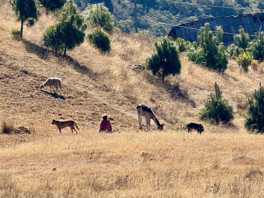 After a restful, quiet night and a short summit hike, we continue on to the Cuchumatanes plateau. We are now in the Parque Todos Santos Cuchumatan and find a great spot for the three of us at 11,820 feet. We quickly check with our neighbors to see if we could park there. And, as always, it is no problem. The farms up here are very simple; many women and girls sit in the sun weaving small, very colorful pieces of fabric. Goats, pigs, and chickens roam freely, and many men are working the barren fields. The world seems to stand still up here. We really like this atmosphere, but at the same time, we couldn’t imagine living here.