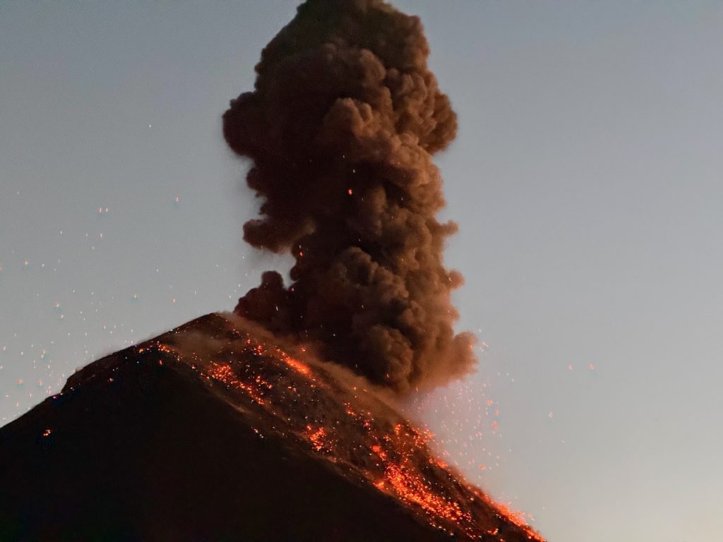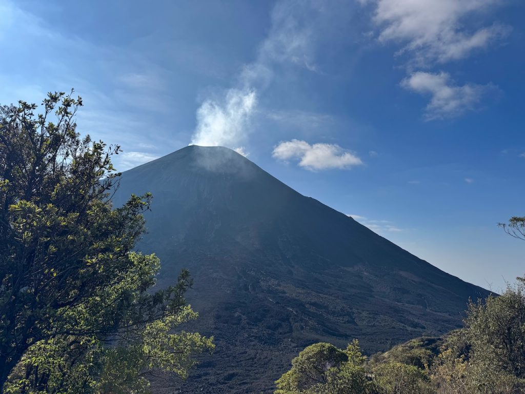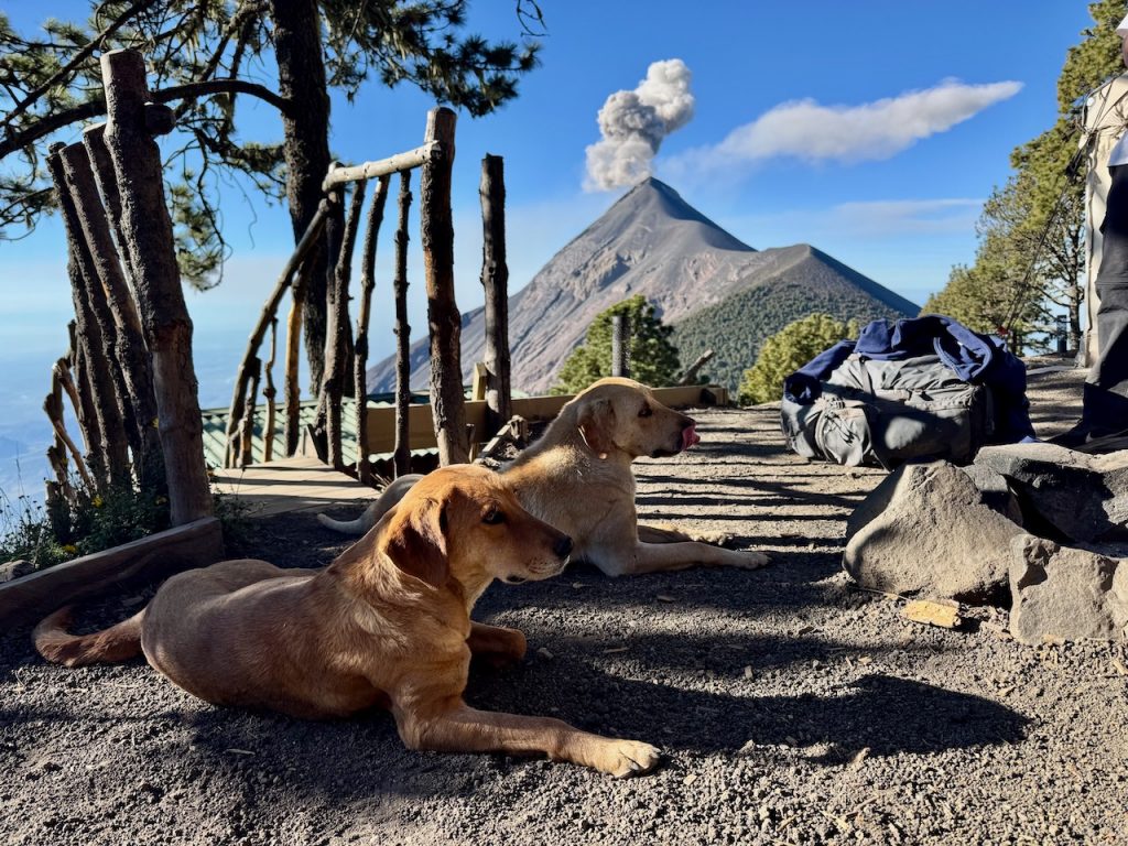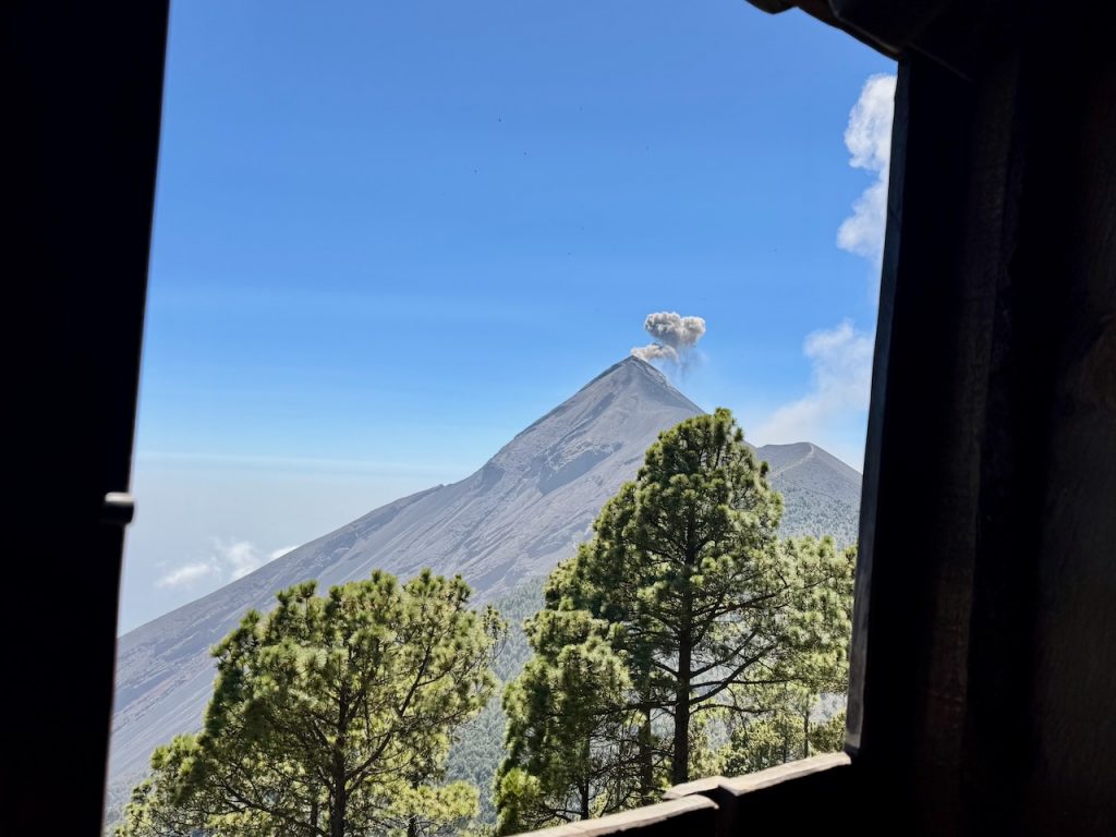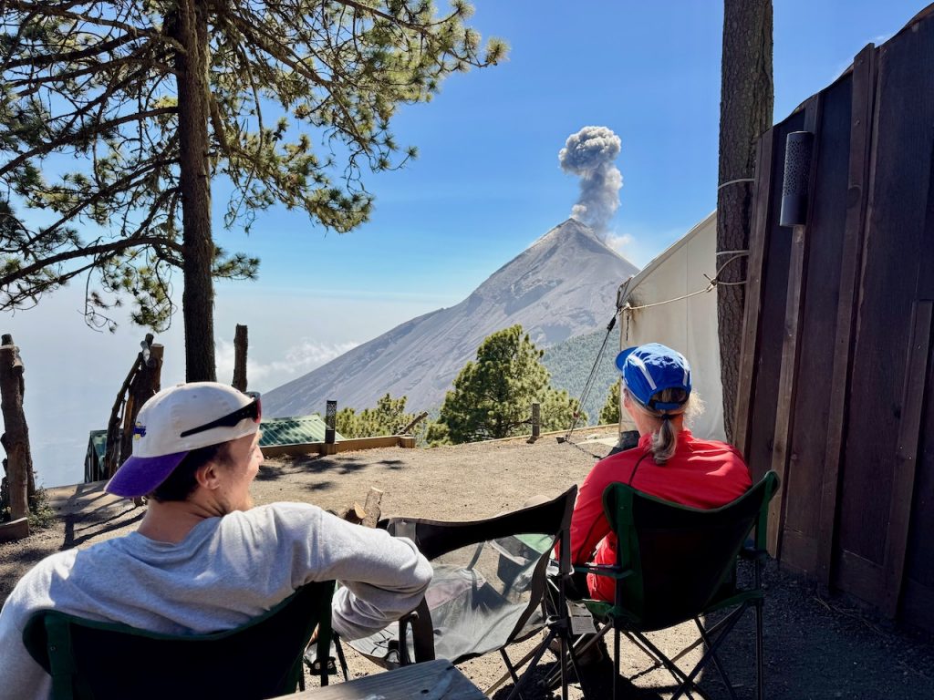 But this year everything is different. For the past two weeks, we’ve been seeing Fuego puffing out in the distance, and it’s incredibly active. Locals are even saying it’s too active. On top of that, the weather is incredibly stable, so we book a tour. We originally wanted to hike up independently and just rent a cabin. But we discover a „glamping“ company online that offers heated tents, very small groups, good food, and a private toilet with a view. That sounds more than tempting (we’ve heard terrible stories about the cold huts, bad food, and large group toilet s(h)ituations on the mountain), so we book the tour on the spur of the moment.