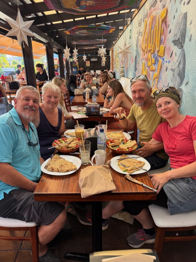 After almost exactly a year, we arrive back in Antigua – it feels a bit like coming home. We settle in at „our“ Vagamundo Camp and have Letti do tons of laundry from the past few weeks. We jump into the fantastic showers and head back up to our mountains, Santa Domingo and San Cristobal el Cerro. After all, we need to exercise a bit for our planned hike up Acatenango/Fuego. We enjoy a few relaxing days in Antigua, and Pat and Neil reappear, and we spend some quality time together.