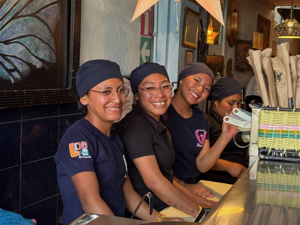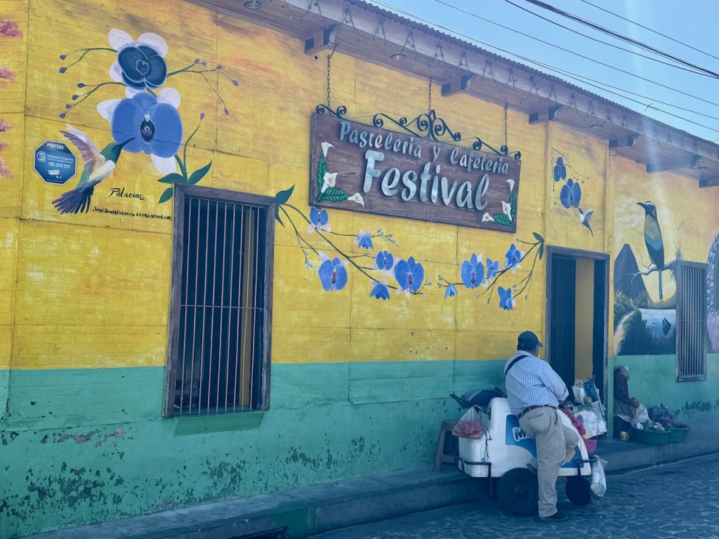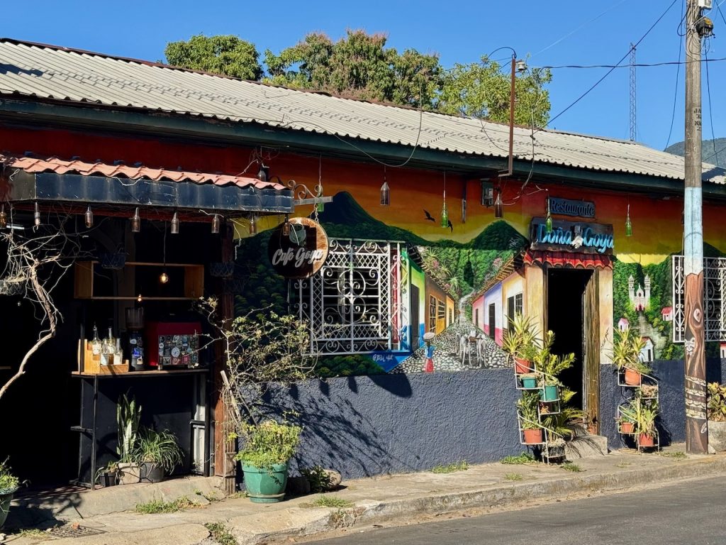 Ein paar Tage später fahren wir wieder mit einer Zwischenübernachtung an „unserem“ Mirador in tiefere Regionen. Unglücklicherweise müssen wir wieder durch Huehue – doch es läuft diesmal zwar langsam aber relativ entspannt. Wir übernachten, gut bewacht von einem mit Gewehr ausgerüsteten „Hilfssheriff“ hinter einer Tankstelle und nach einer erstaunlich ruhigen Nacht dort fahren wir weiter auf einer fantastischen Straße (CA-1) Richtung Antigua. Auf dem Weg finden wir ein goldiges Restaurant mit leckeren Frapuchinos und Crepes. Wir fragen, ob wir dort auch übernachten dürfen – und natürlich dürfen wir. Alle sind so herzlich, hilfsbereit und lieb zu uns. Wir werden einfach verwöhnt.