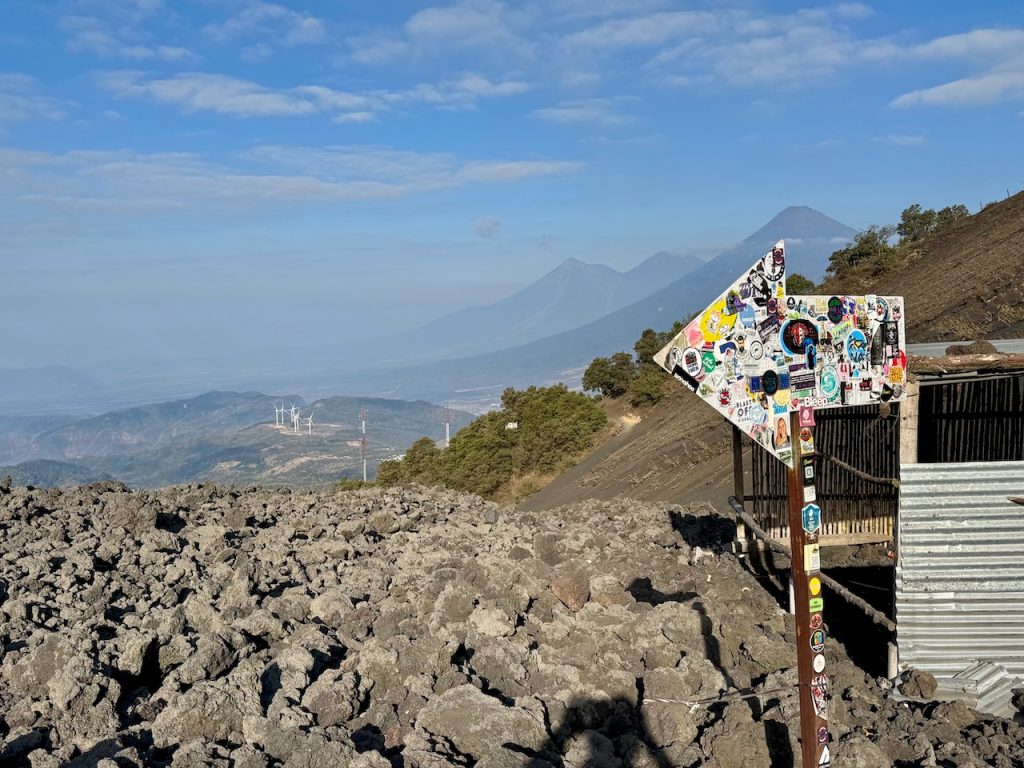 The base camps are spread across the entire southern side of Acatenango and consists of hundreds of small huts and tents. It’s beautifully integrated into the wooded hillside, and you can hardly see the other camps from your own. The waste management on Acatenango is also commendable. There’s a dedicated collection point for all the camps‘ trash. Two young men are responsible for sorting, compacting, and preparing the waste for transport down the mountain. Unfortunately, you still see a lot of plastic bottles, bags, and other trash lying around on the way up, simply discarded by many hikers. This makes us wonder whether we should even be supporting this kind of mass tourism.
