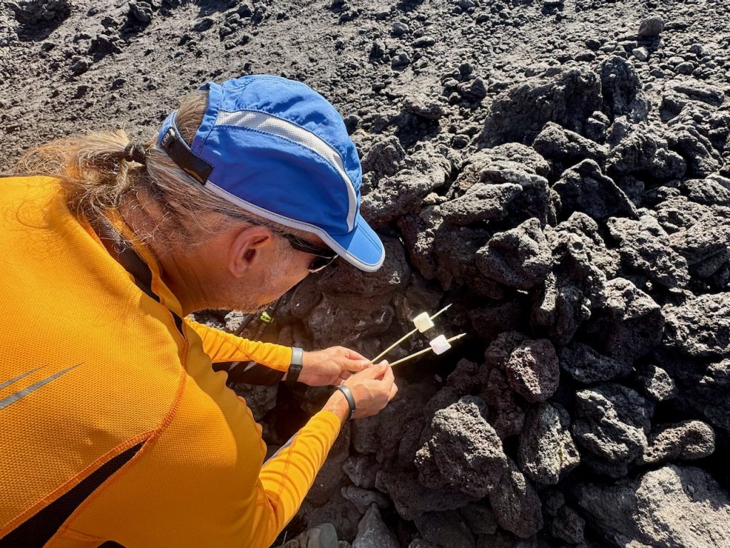 Deysi ist schon vor 7 Uhr bereit und wir marschieren zu Dritt, begleitet von 5 Hunden, den Berg hinauf. Es ist nicht sehr anstrengend, wir haben nur gute 500 Höhenmeter zu bewältigen und die Wanderung ist auch nur gute 5 km lang. Doch erfahren wir von Deysi viel von den vergangenen Ausbrüchen und lernen einiges über die Pflanzen- und Tierwelt auf dem Vulkan. Auf einem Hochplateau mit vielen Dampfschloten brutzeln wir uns ein paar Marshmellows und genießen die Stille, denn noch sind wir die einzige Truppe hier oben. Eine schöne und informative, wenn auch nicht spektakuläre Wanderung. Uns hat besonders der steile Abstieg durch ein Aschefeld Spaß gemacht. Hier konnten wir durch den weichen Lavasand herunterlaufen, was sich wie Skifahren angefühlt hat.