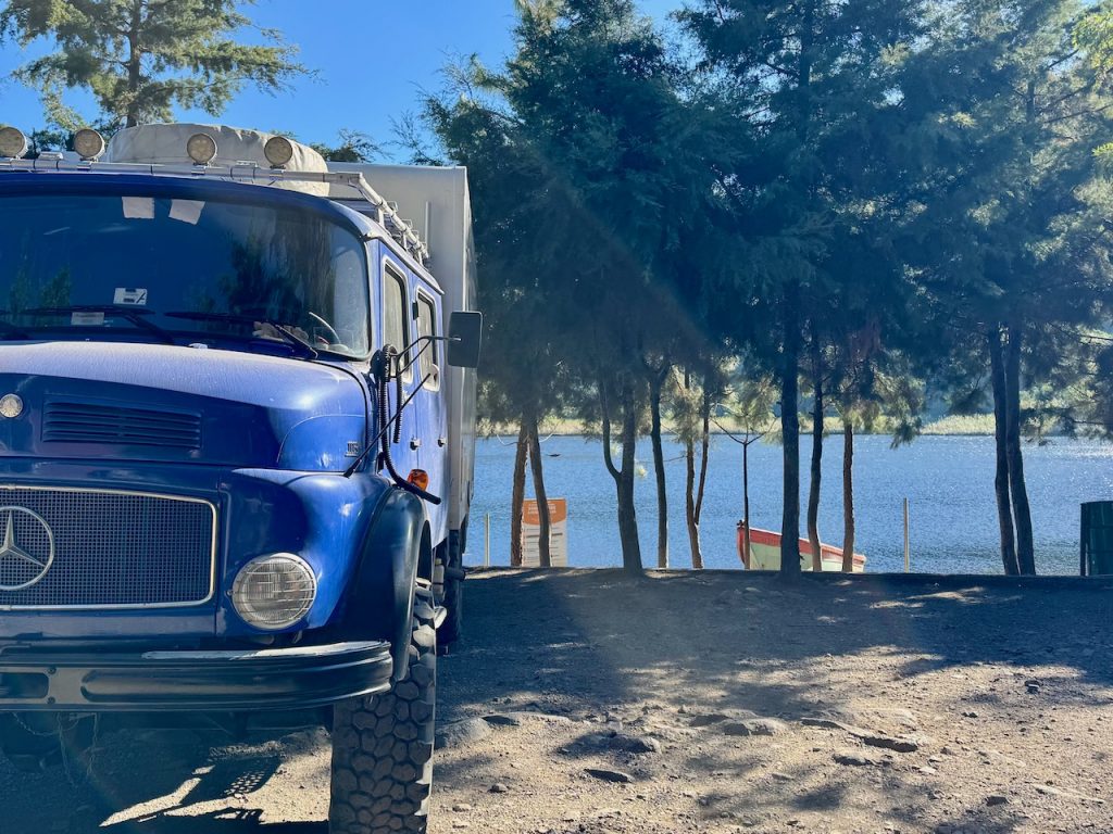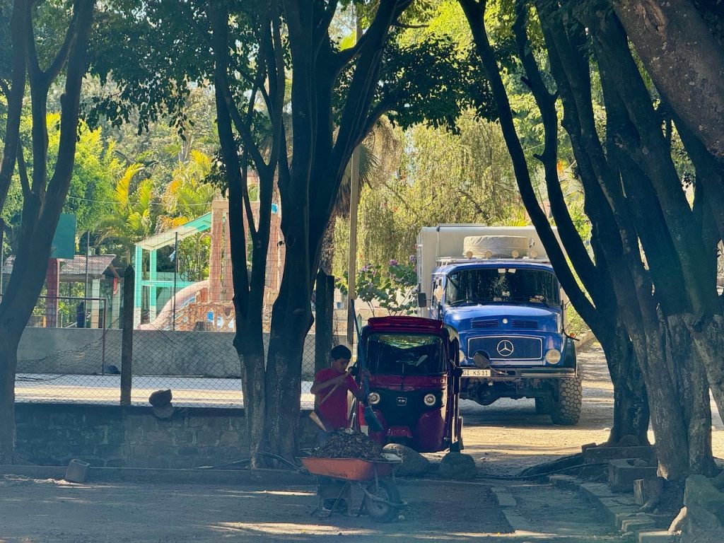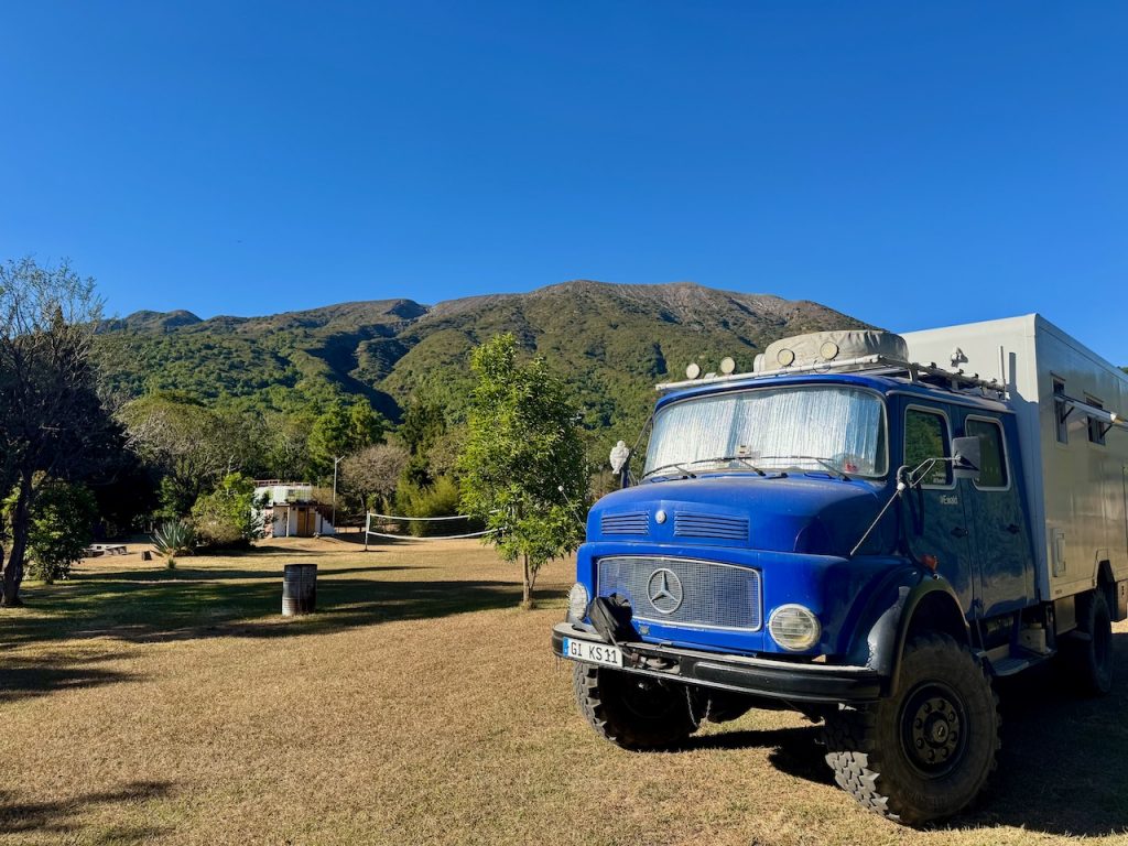 Unfortunately, Kasi notices a few losses on Ewald. We lost our wheel chock, which had been with us since the beginning. We heard the rattling, but thought it was from another passing truck. And we lost part of our right-hand parking brake. That’s a bit of a blow—but surprisingly, the system is redundant, and the parking brake still works on both sides. Kasi has already found a suitable break cylinder in Germany, and we’ll bring it along next time, unless we happen to find an identical brake cylinder here. Until then, we’ll work with stones and wooden planks when we park for extra security. Everything will be alright.
