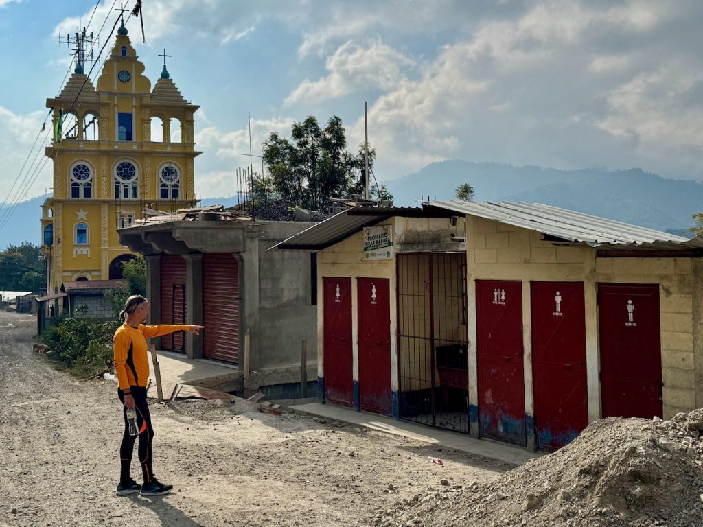 Wir fahren auf der brandneuen Straße, ganz ohne Schlaglöcher und Topes, noch etwa 80 km weiter ins Landesinnere und stellen uns dann zum Übernachten an ein Schwimmbad. Zum Schwimmen ist es aber nicht sehr einladend. Wir marschieren am Abend und am nächsten Morgen mal links und mal rechts die super steilen Wege hoch. Willkommen in Guatemala – die Wege sind so steil, dass wir diese unmöglich joggen könnten. Hier abseits der Hauptstraße sehen wir ganz ursprüngliche kleine Kaffeefarmen und die Menschen sind zurückhaltend, scheu aber sehr freundlich zu uns. Wir werden jedoch auch teilweise wie ausserirdische beäugt. Wir glauben, dass hier kaum je „Weißbrote“ herkommen. Einfach großartig und unverfälscht.