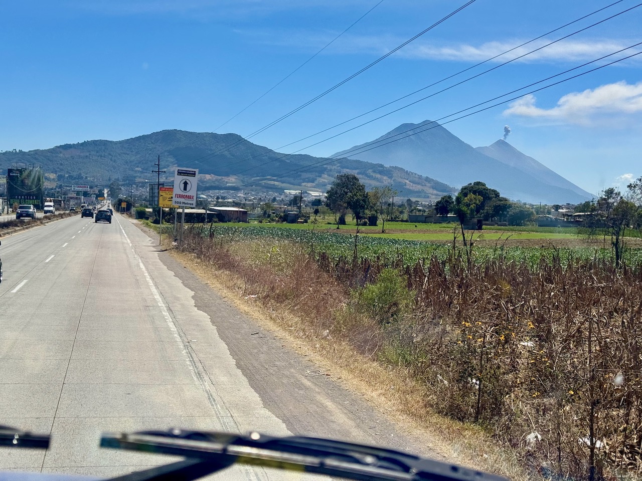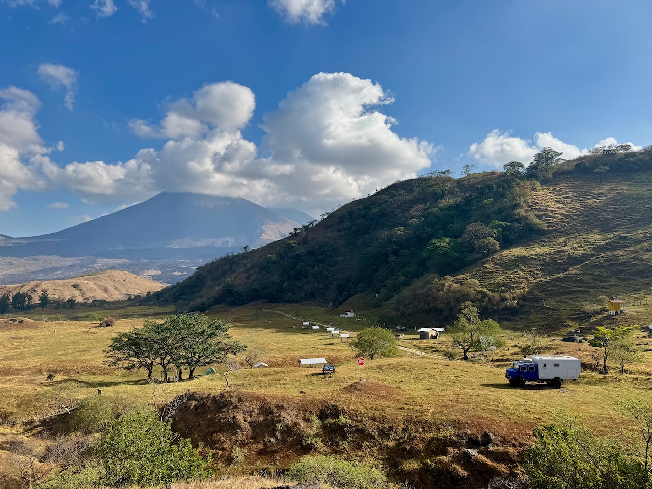After our second breakfast, the parking lot quickly fills up, and we decide to continue our journey. Our next destination is directly behind Pacaya from here. The easy route is 18 miles long, and the more challenging one is 7 miles long. Luckily, we were sensible for once and opted for the easy route. It takes us more than two hours for this „easy“ route. Once again, we feel like we are setting new „steepness“ records as we crawl up and down the hills in first gear, using low range. We figure we will not miss the roads here in Guatemala all that much 😆.