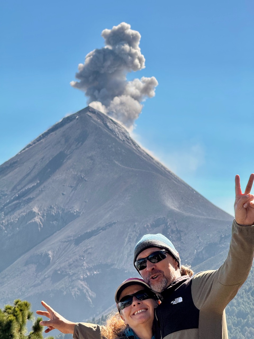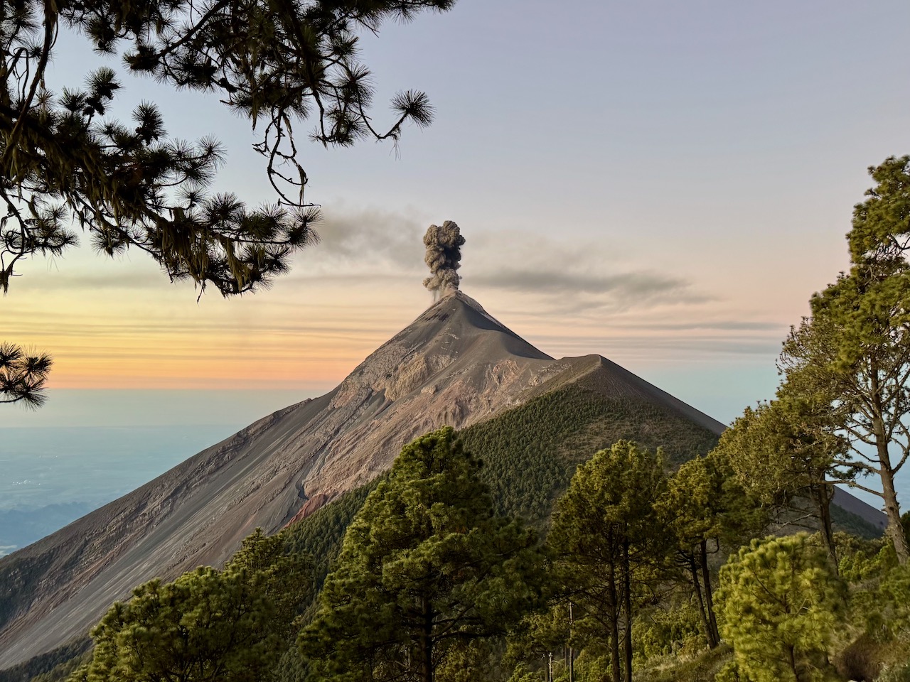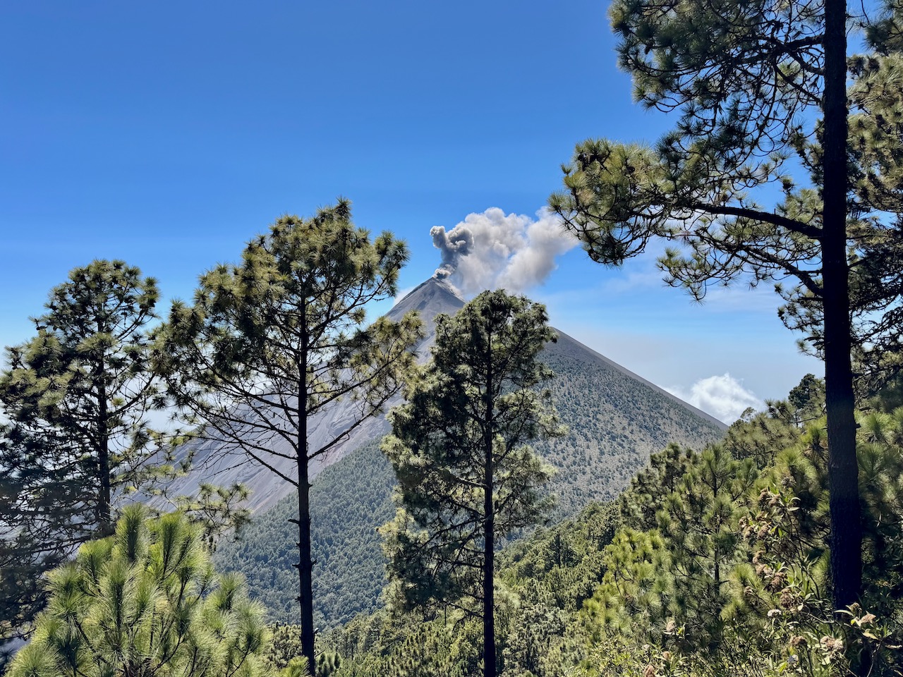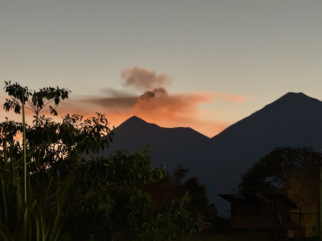 But this year everything is different. For the past two weeks, we’ve been seeing Fuego puffing out in the distance, and it’s incredibly active. Locals are even saying it’s too active. On top of that, the weather is incredibly stable, so we book a tour. We originally wanted to hike up independently and just rent a cabin. But we discover a „glamping“ company online that offers heated tents, very small groups, good food, and a private toilet with a view. That sounds more than tempting (we’ve heard terrible stories about the cold huts, bad food, and large group toilet s(h)ituations on the mountain), so we book the tour on the spur of the moment.