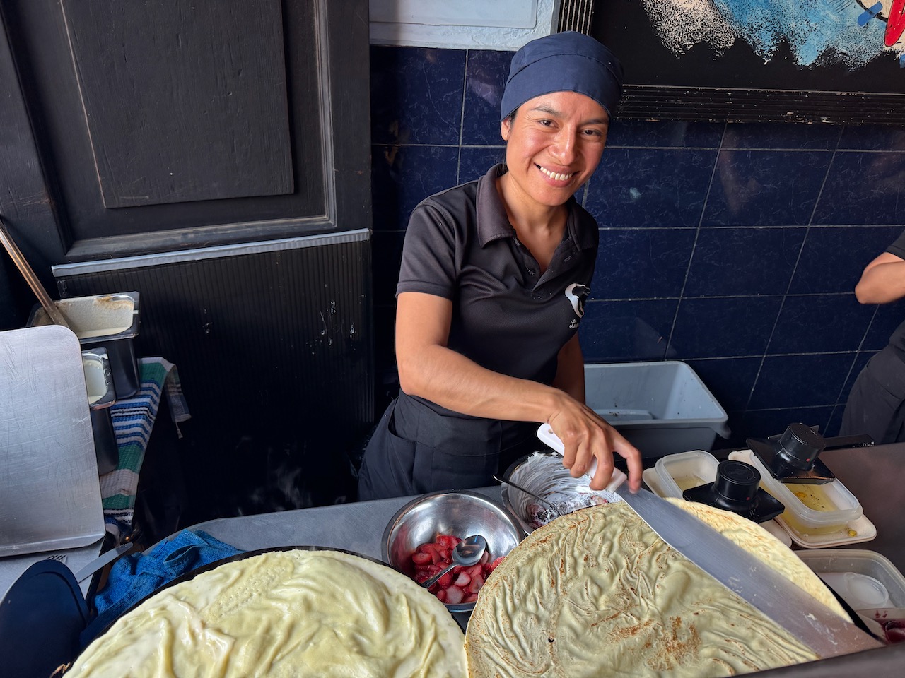 We hear about a large festival in honor of the „Virgen de Candelaria“ (Virgin of Candlemas) is taking place. Wonderful! It is quite lively, and we plunge into the crowds. We see about 40-50 „virgins“ dancing to „Brother Lui Lui Lui.“ Dieter Bohlen is everywhere! The procession, combined with the live fireworks, is a spectacle, and the atmosphere is simply extraordinary. People love to celebrate – smiling faces everywhere. We explore another viewpoint, but the hike was probably one of our ugliest ever, as we have to wade through piles of trash. However, the Oreo shake at the viewpoint more than made up for it. Otherwise, we spend a lot of time at the market and enjoy the luxury of long, hot showers at the small campsite.