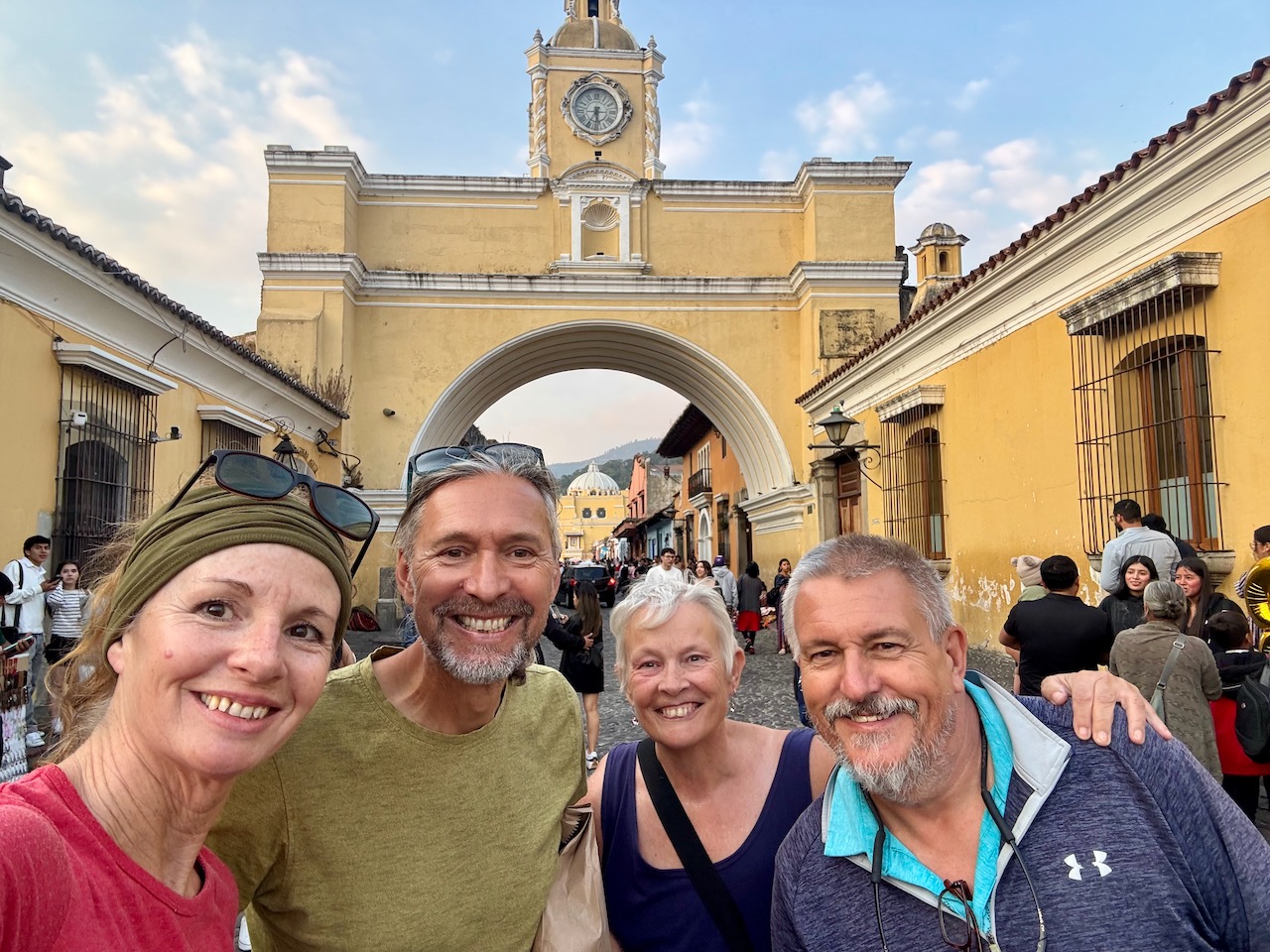 After almost exactly a year, we arrive back in Antigua – it feels a bit like coming home. We settle in at „our“ Vagamundo Camp and have Letti do tons of laundry from the past few weeks. We jump into the fantastic showers and head back up to our mountains, Santa Domingo and San Cristobal el Cerro. After all, we need to exercise a bit for our planned hike up Acatenango/Fuego. We enjoy a few relaxing days in Antigua, and Pat and Neil reappear, and we spend some quality time together.