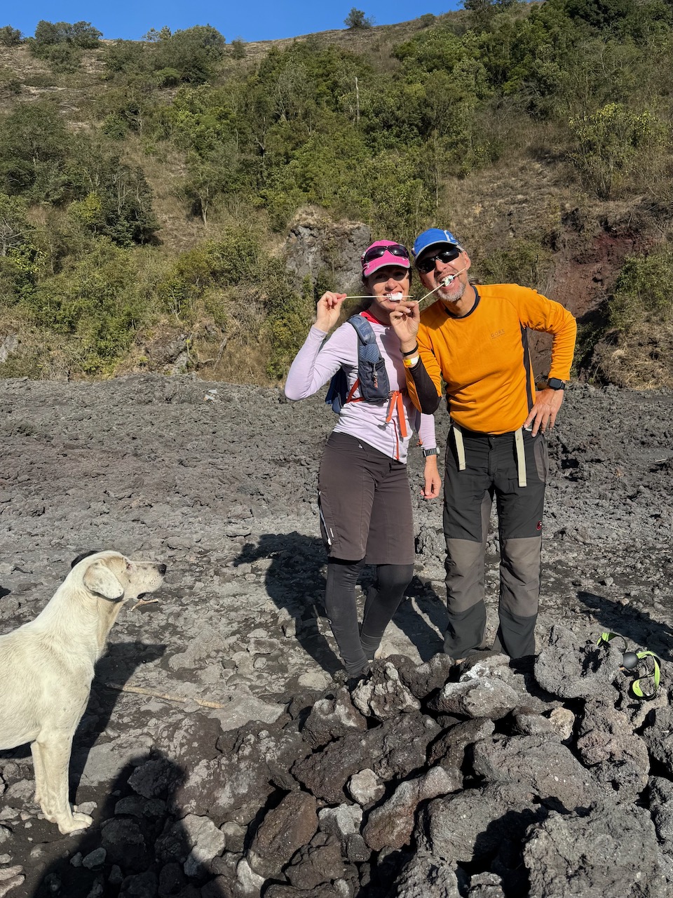 The way back down isn’t so great. Many people are on the way down, and it’s incredibly dusty, steep, and slippery. We run a lot, so we don’t slip quite as much. All the way down, we are looking forward to a shower, which we thoroughly enjoy back at the campsite. At the same time, all our clothes go straight into the washing machine. Our conclusion is that the experience was unique. We didn’t find the hike itself particularly beautiful or too strenuous, although we saw many people who were pushing themselves to their limits. There are much nicer hikes—more secluded and less dusty—but the experience at the top of the volcano is simply unforgettable.