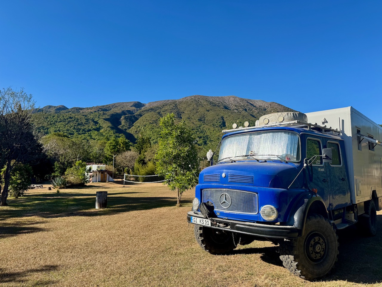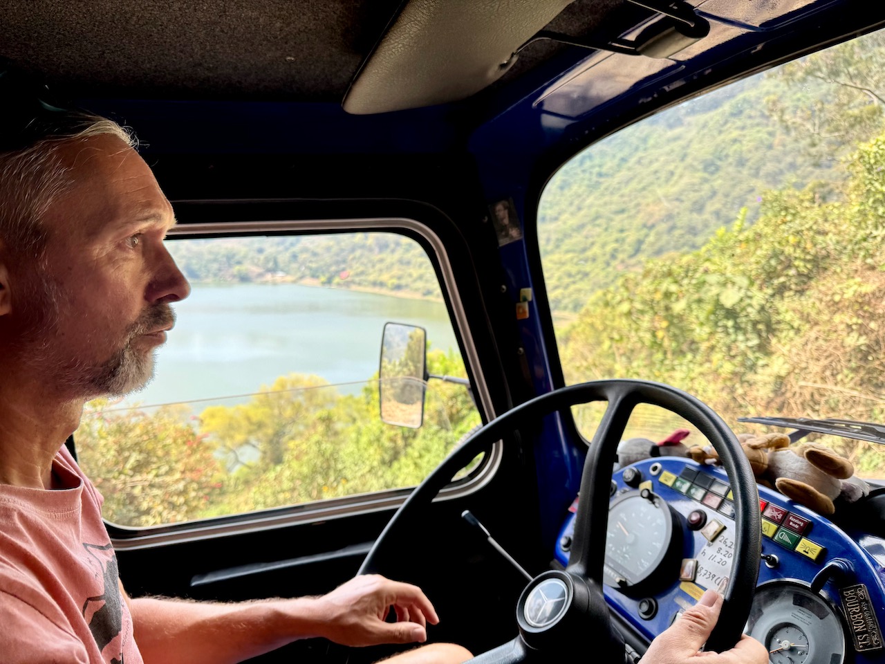 Unfortunately, Kasi notices a few losses on Ewald. We lost our wheel chock, which had been with us since the beginning. We heard the rattling, but thought it was from another passing truck. And we lost part of our right-hand parking brake. That’s a bit of a blow—but surprisingly, the system is redundant, and the parking brake still works on both sides. Kasi has already found a suitable break cylinder in Germany, and we’ll bring it along next time, unless we happen to find an identical brake cylinder here. Until then, we’ll work with stones and wooden planks when we park for extra security. Everything will be alright.
