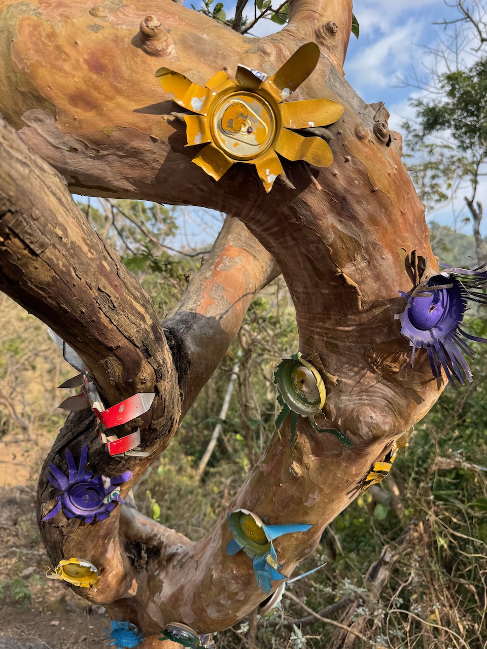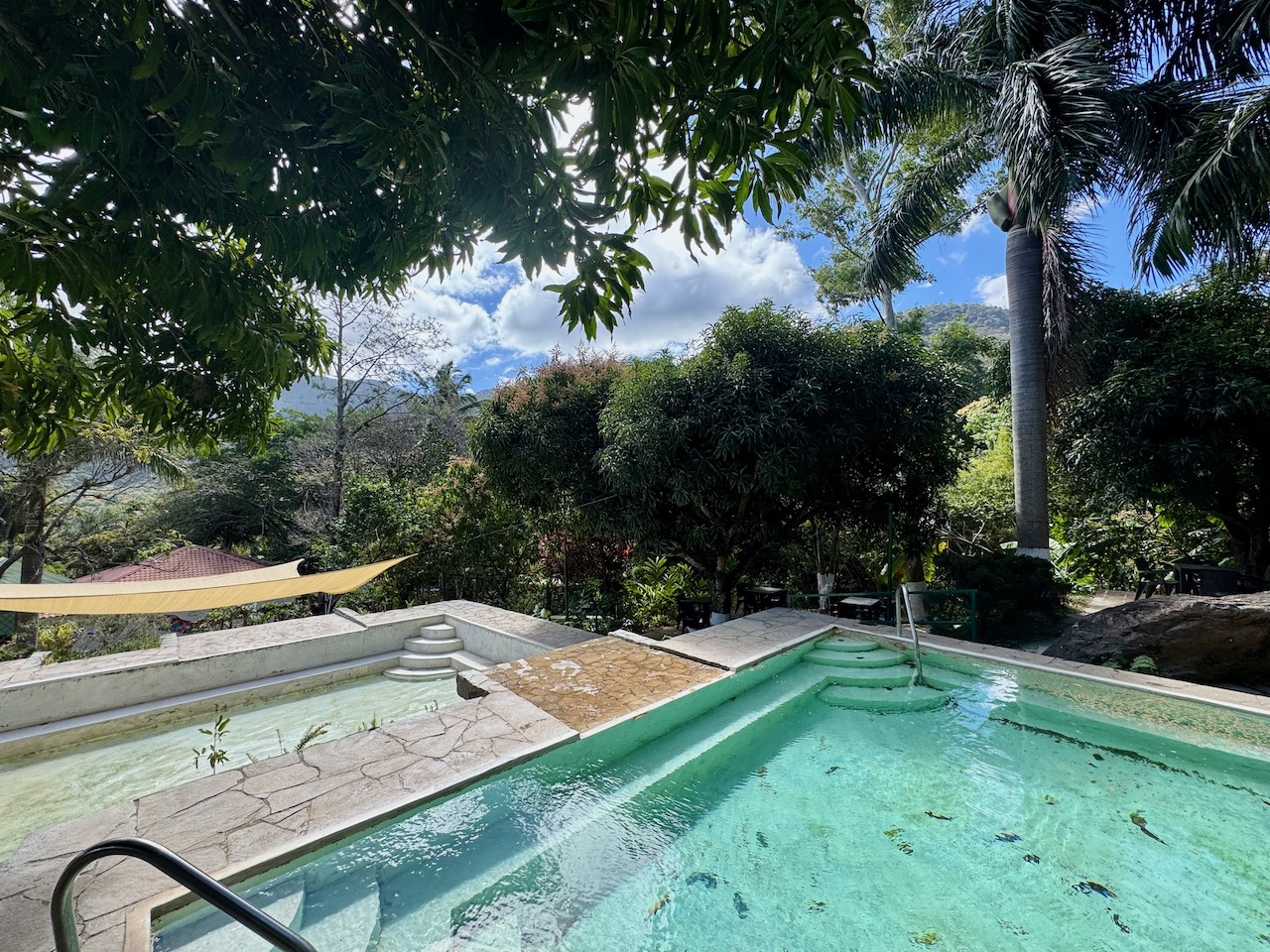 But the effort is worth it; we arrive at Finca La Escondida – the hidden finca. We have a view of four volcanoes: Pacaya, Agua, Acatenango, and Fuego, and it is wonderfully peaceful and beautiful. The vast, almost deserted finca is dotted with small works of art, viewpoints, and swings, and we are surrounded by cows, horses, and cattle egrets. Simply idyllic. From here we can also go for great runs and hikes, and so we are enjoying a few very peaceful days here. Pacaya is much more beautiful to look at from here. We hike to a waterfall – at first we think it’s probably dried up or that we won’t find it at all. But after almost 4 miles, partly through lava fields, we find it and it’s even still flowing with water. Yippee!