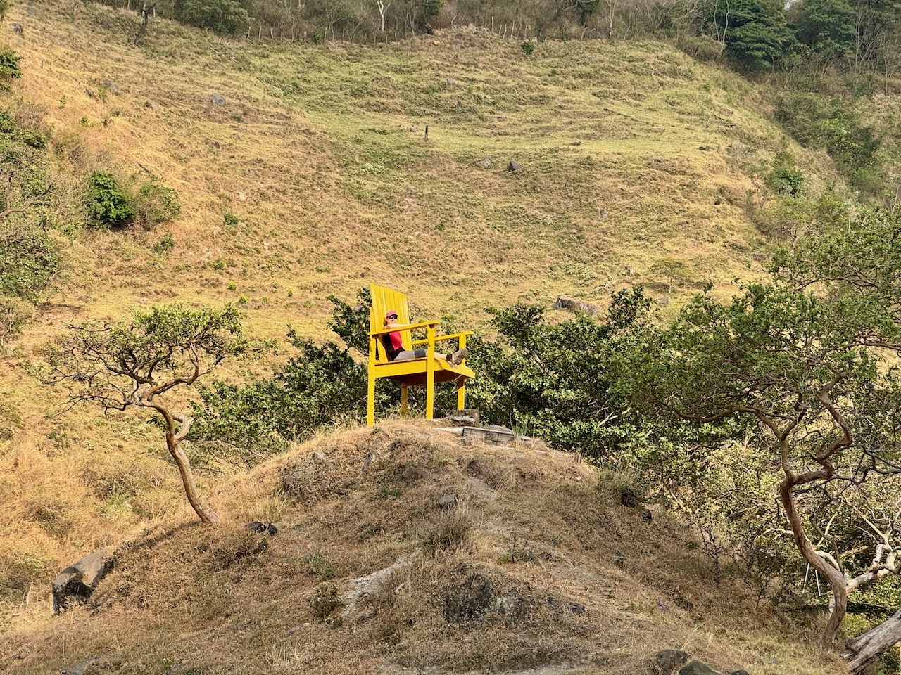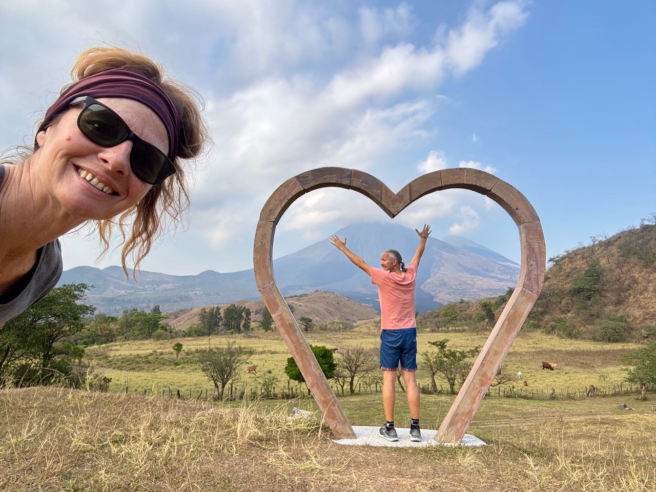 Doch die Mühe hat sich gelohnt, wir landen auf der Finca La Escondida – die versteckte Finca. Wir haben die vier Vulkane, Pacaya, Agua, Acatenango und Fuego im Blick und es ist herrlich ruhig und wunderschön hier. Die riesige fast menschenleere Finca ist gesprenkelt mit kleinen Kunstwerken, Miradoren, Schaukeln und wir sind umgeben von Kühen, Pferden und Kuhreihern. Einfach idyllisch. Von hier aus können wir auch prima laufen und wandern und so genießen wir hier ein paar sehr ruhige Tage. Von hier aus ist auch der Pacaya viel schöner anzuschauen. Wir unternehmen eine Wanderung zu einem Wasserfall – zunächst denken wir, dass er vermutlich ausgetrocknet ist oder dass wir ihn gar nicht finden. Doch nach knapp 6 km, teilweise durch Lavafelder finden wir ihn und er führt sogar noch jede Menge Wasser. Yippie.