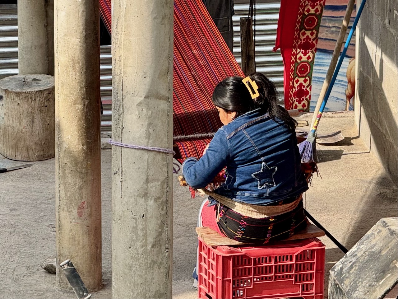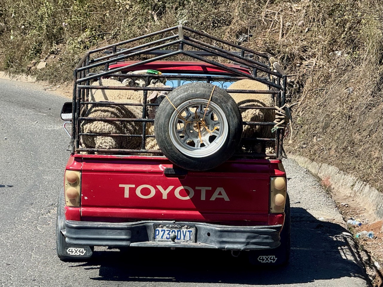 After a restful, quiet night and a short summit hike, we continue on to the Cuchumatanes plateau. We are now in the Parque Todos Santos Cuchumatan and find a great spot for the three of us at 11,820 feet. We quickly check with our neighbors to see if we could park there. And, as always, it is no problem. The farms up here are very simple; many women and girls sit in the sun weaving small, very colorful pieces of fabric. Goats, pigs, and chickens roam freely, and many men are working the barren fields. The world seems to stand still up here. We really like this atmosphere, but at the same time, we couldn’t imagine living here.