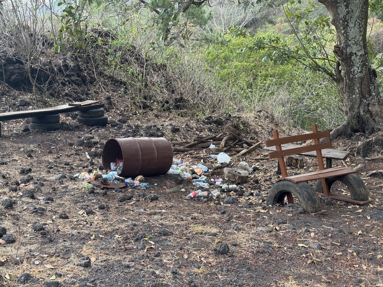 The base camps are spread across the entire southern side of Acatenango and consists of hundreds of small huts and tents. It’s beautifully integrated into the wooded hillside, and you can hardly see the other camps from your own. The waste management on Acatenango is also commendable. There’s a dedicated collection point for all the camps‘ trash. Two young men are responsible for sorting, compacting, and preparing the waste for transport down the mountain. Unfortunately, you still see a lot of plastic bottles, bags, and other trash lying around on the way up, simply discarded by many hikers. This makes us wonder whether we should even be supporting this kind of mass tourism.