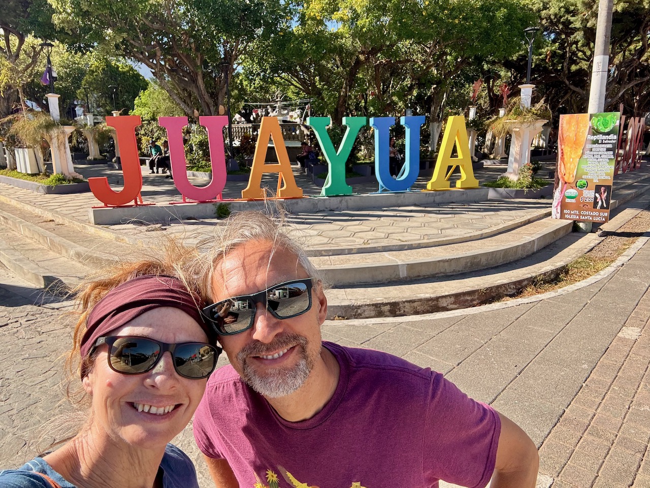 Jetzt heißt es für längere Zeit von Mexiko Abschied zu nehmen. Das fällt uns ganz schön schwer und die super lieben Menschen an der Grenze machen es uns nicht wirklich leichter. Wir melden uns ab und geben das TIP für Ewald zurück, wobei der Zöllner uns zweimal fragt, ob wir uns ganz sicher sind, dass wir nicht schon demnächst wieder kommen. Es wird ein paar Jahre dauern, aber wir sind uns sicher, eines Tages kommen wir zurück. Die Einreise nach Guatemala verläuft ebenso schnell und geschmeidig. Wir fahren bei La Mesilla über die kleine Grenze und müssen mit Ewald durch den Wochenmarkt manövrieren – das stellt aber, wie immer, mit den entspannten Menschen, die einfach ein paar Marktstände verschieben und die Sonnenschirme zusammenklappen, kein Problem dar. Insgesamt hat die Aus- und Einreise keine Stunde gedauert und hat sogar Spaß gemacht.