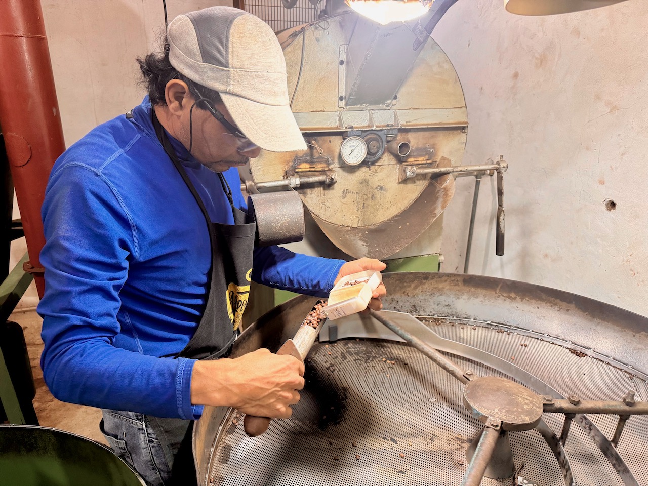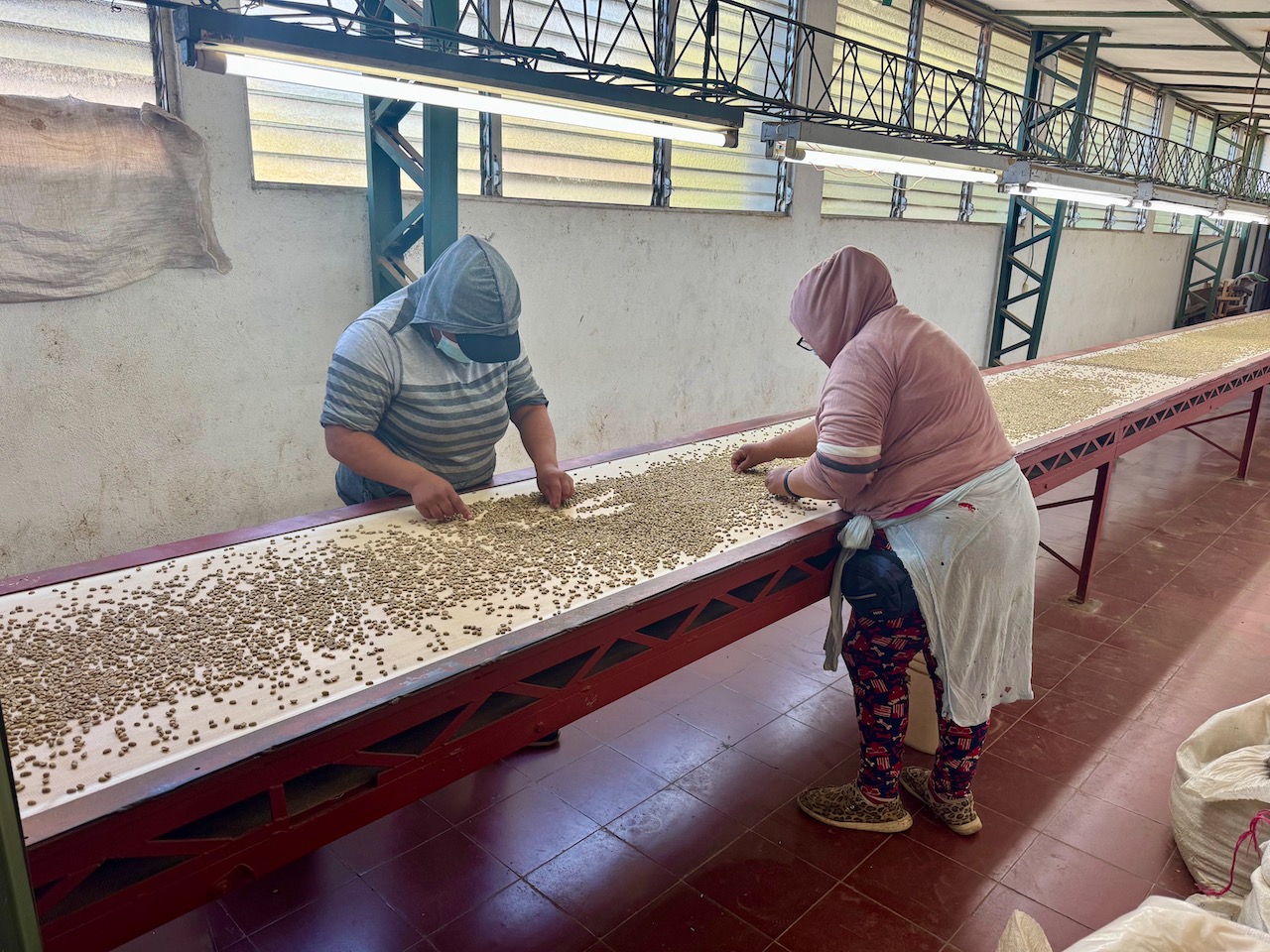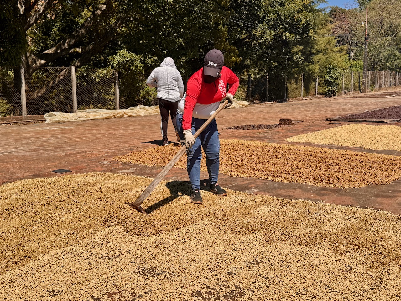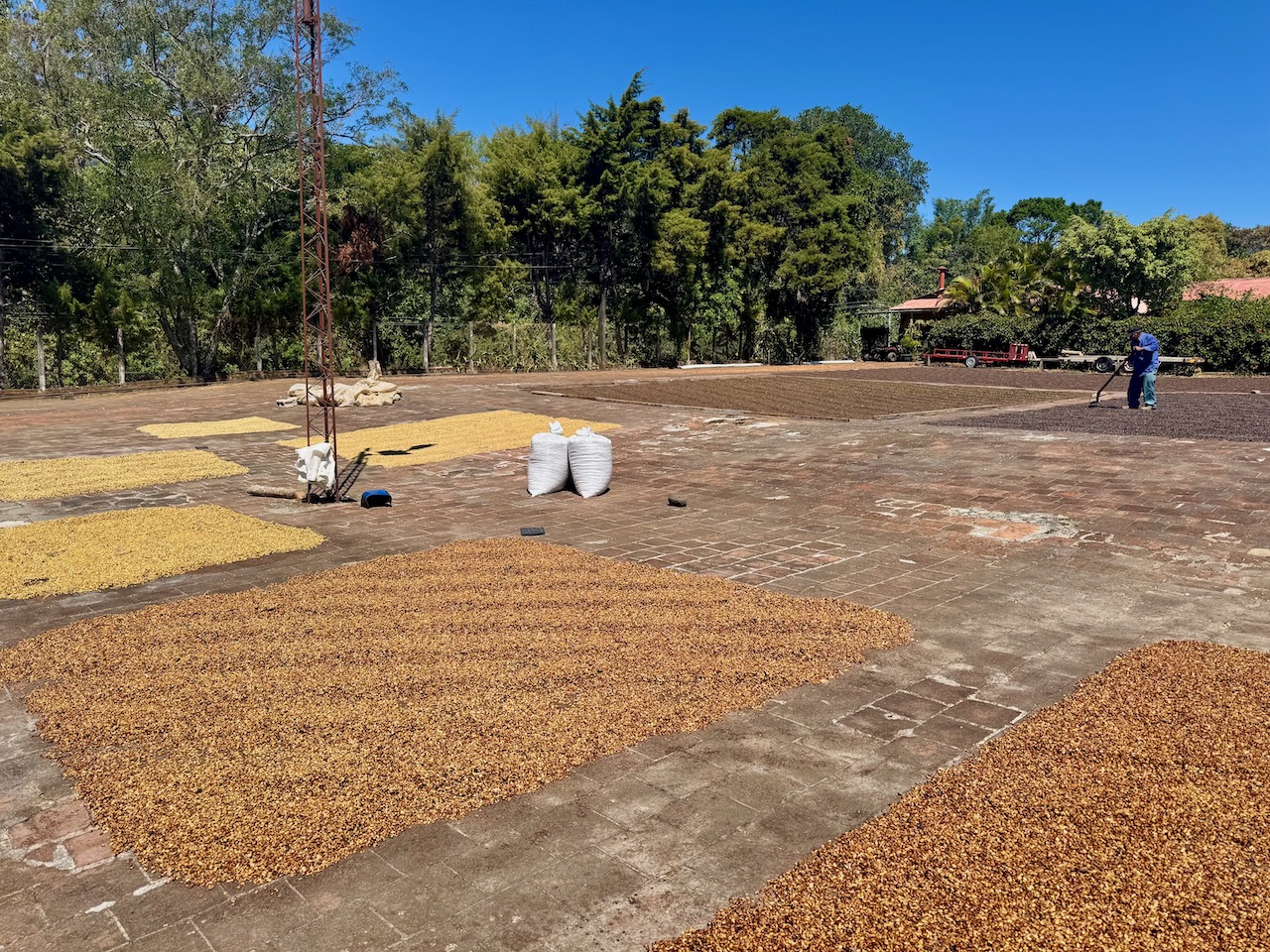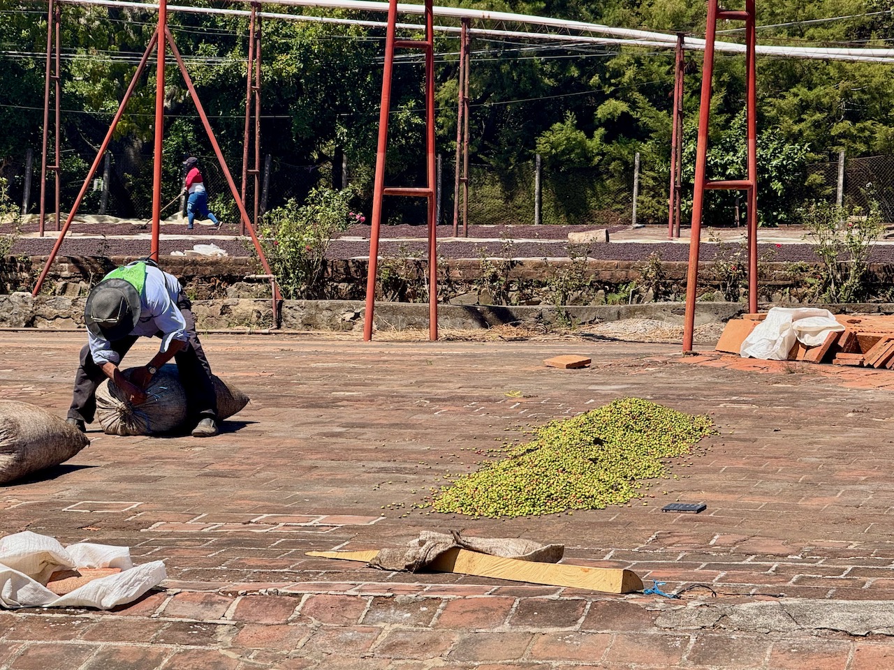 The night at the finca is wonderfully peaceful, and the next morning we’re treated to a delicious breakfast followed by a comprehensive tour of the entire estate. The coffee is processed differently here than in Guatemala. Here, the whole cherries are first dried for 15 days in large open fields, and then the fruit is separated from the beans, which are then washed and dried again. In Guatemala, the pulp was separated directly from the beans (without drying). The second drying process takes another five days, during which the beans are constantly turned by hand. In general, there’s a great deal of manual labor involved, sorting takes place multiple times before and after roasting. The beans are also sorted by size, but this is done using roughly 130-year-old vibrating machines. We learn a lot and are happy to understand almost everything in Spanish, even though our guide speaks incredibly fast Spanish. Of course, we also buy coffee, because it tasted really delicious at breakfast.