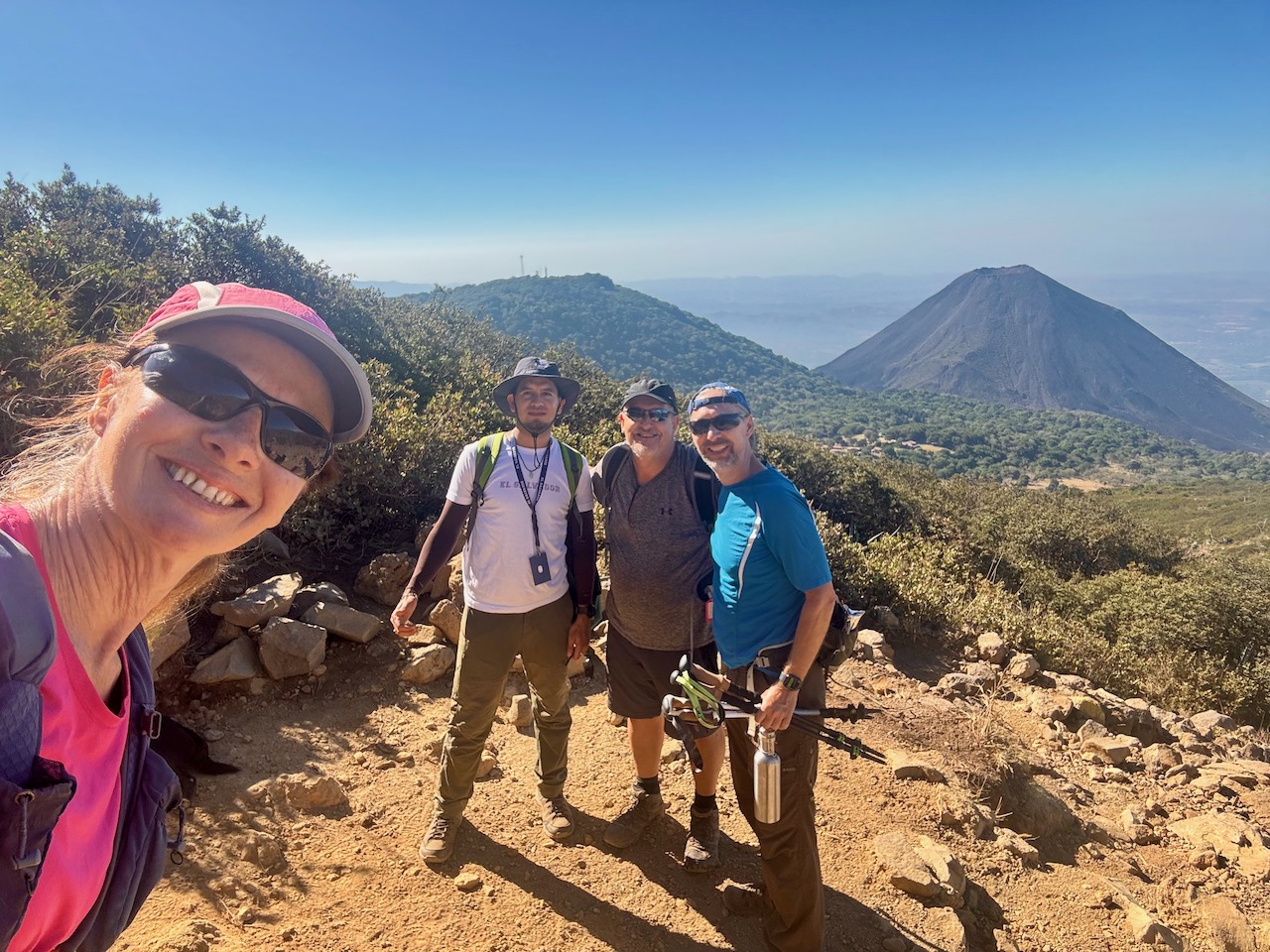 Now nature is calling us again, and after a shopping trip to the city of Sonsonata (which is terribly crowded, loud, and hot), we escape to the Volcano de Santa Ana and Volcán de Izalco. Ewald bravely climbs to 6,060 feet and here we stand on a beautiful grassy plateau. Pat and Neil arrive shortly after us, and we enjoy a relaxing afternoon together with beautiful views of the volcanoes, surrounded by nature and in a perfect cool climate. Wonderful.