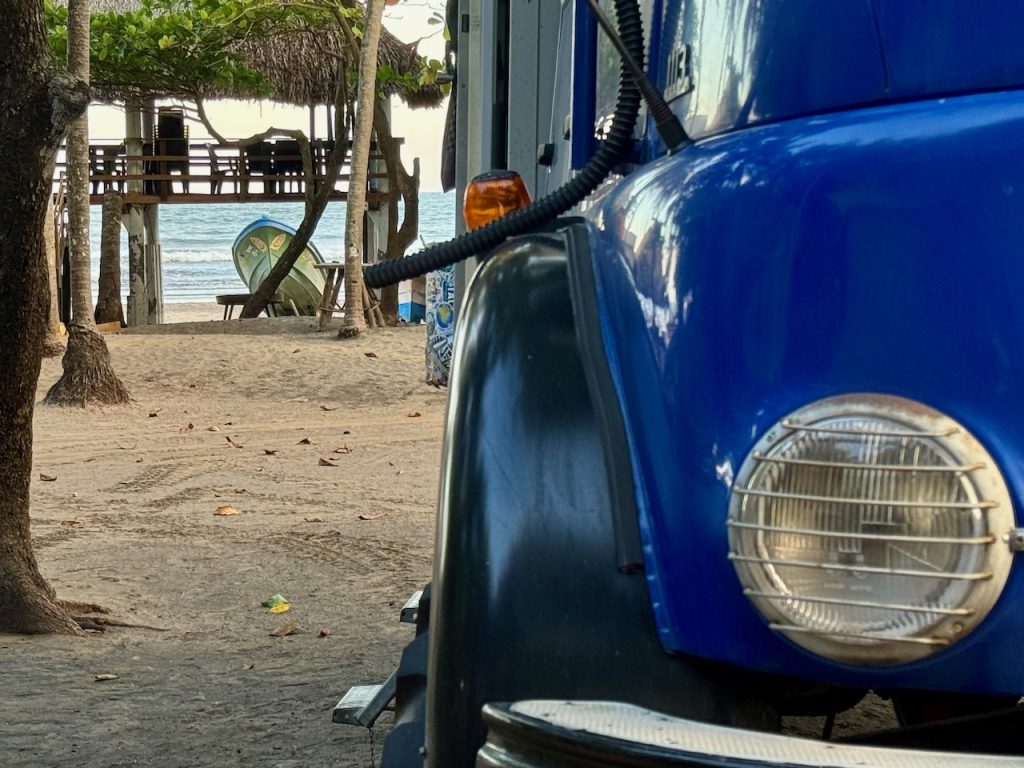 It rains on and off, but that’s not so bad, since the rain thankfully is warm. However, after the second night, when it becomes more persistent and heavier, we decide to move on. We want to go to San Pedro Sula and stop at a brewery there – we’ve really taken a liking to them. But the town is sprawling, it’s raining heavily, and to top it all off, we miss the turnoff to the brewery… so we decide on the spur of the moment to just keep going. Walking around in the mud isn’t exactly fun. After another pleasant 90 km, we arrive in Tela, on the Caribbean coast, where we can park in a gated community right on the beach. We briefly explore the beach again and then snuggle up in Ewald.