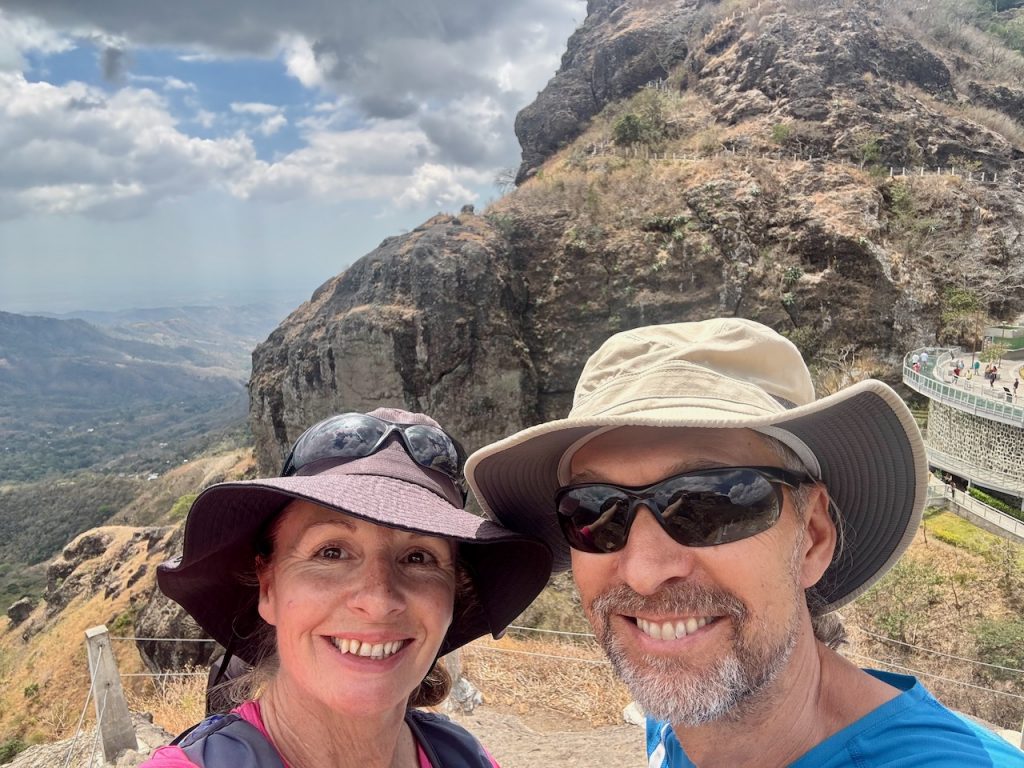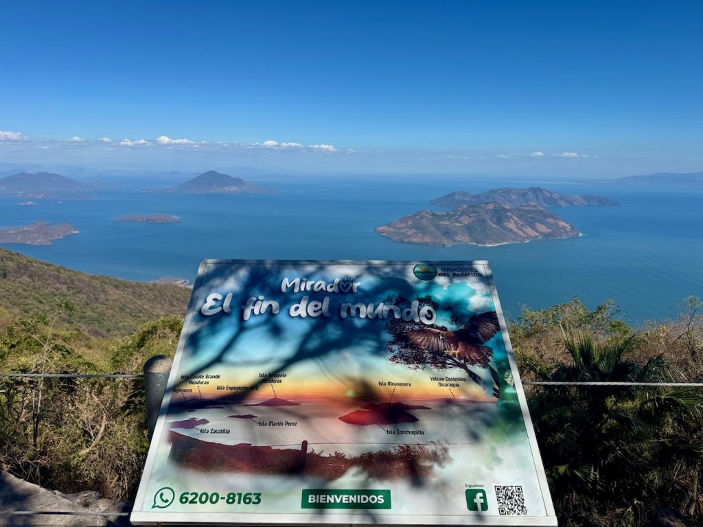 Dann biegen wir ab und eine abenteuerliche Fahrt beginnt. 8 km zum Teil übelste Piste mit einer Höhendifferenz von 1.200 m gilt es zu überwinden. Im ersten Gang in der Untersetzung meistert Ewald die teilweise mehr als 20 prozentigen Steigungen mit Bravour. Am Anfang bin ich (Sandie) skeptisch, ob wir das überhaupt schaffen – es ist echt so irre steil, dass es mir schon fast schlecht wird. Aber Karsten und Ewald bleiben cool oder tun zumindest so – HA! Aber wir schaffen es, natürlich. Und oben am Mirador „Fin del Mundo“ ist es einfach unbeschreiblich. Wir bleiben 2 Nächte und erleben fantastische Sonnenaufgänge und überhaupt eine ganz zauberhafte Zeit hier oben. Es ist mitten in der Woche und wir haben den Volcan de Chonchagua quasi ganz für uns alleine. Der Blick auf die Inseln und gleich drei Länder, El Salvador, Honduras und Nicaragua ist unbeschreiblich. Schaut einfach die Bilder an.