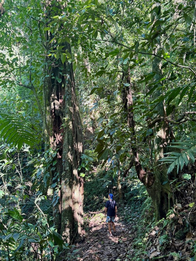 Unfortunately, Roman isn’t home himself, but the security guard lets us in, and we spend a quiet night. Fantastic. We continue on to Cerro Azul National Park. A cloud forest at an altitude of about 1000 meters, and the climate is wonderful. We still have to cover ourselves with a thin blanket almost every night. Yippee! When we arrive, it’s Sunday, and the parking lot is full. But we find a great spot on a green meadow, and from that evening onward, and for the next few days, we practically have the park to ourselves again. Every now and then, we chat with locals at the restaurant and get some tips. We also feel welcome in Honduras. The people are kind and helpful. Traveling isn’t difficult in these countries – at least that’s how it seems to us. We’re thoroughly enjoying the park, going on several hikes, and jumping into the cold water under the waterfall. It’s a very pleasant time.