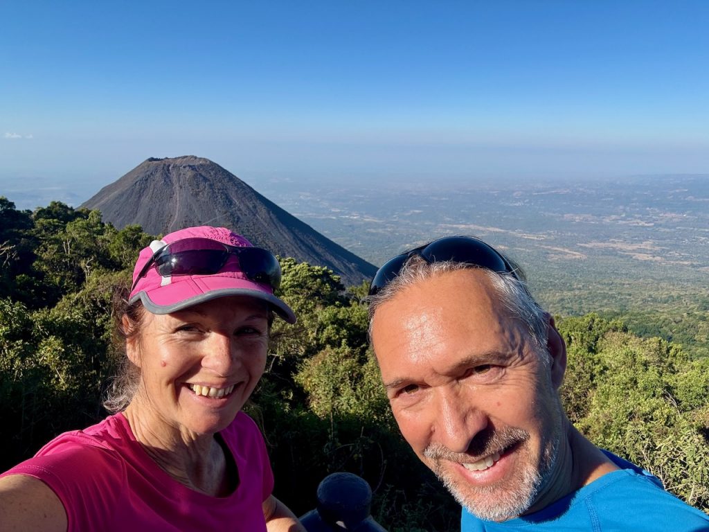 Wir verbringen noch ein paar unglaublich ruhige Nächte beim Vulkan Santa Ana. Wir dachten eigentlich, dass am Wochenende einiges los sein wird, doch am Freitagabend ist es totenstill und wir fühlen uns, als wären wir die einzigen Menschen in diesem ganzen Gebiet. Großartig. Zweimal laufen wir morgens zum Mirador, das sind genau 4 Kilometer den Berg hoch, und schauen uns den leicht dampfenden Volcan de Izalco von oben an. Dann wollen wir eigentlich noch die Räder rotieren – wir stehen auf der Wiese ziemlich gerade und denken, dass das eine gute Gelegenheit wäre. Doch mit nur einem Wagenheber und zugegebenermassen sehr viel Holz gestaltet sich das Ganze doch etwas umständlich und wackelig. Also verschieben wir das noch mal.