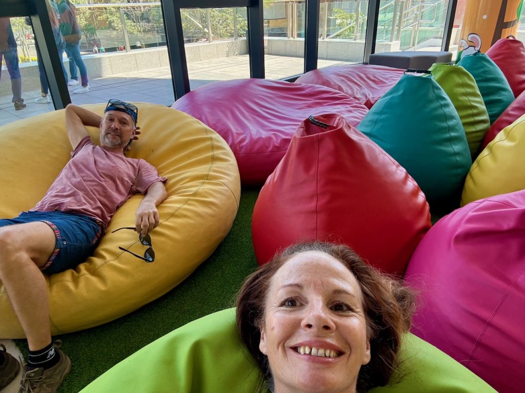 We parked at Finca Utatlan, a little outside of San Salvador, in the mountains. Once again, we were the only visitors, and it was simply beautiful. From there, we explored the Mirador viewpoint and the pupusa (a type of snack) on offer. We weren’t disappointed by either the view or the food. We took an Uber into the city center and explored San Salvador’s historic district. We’ve rarely seen such a clean and tidy city center (anywhere in the world), and the police presence was immense. It’s all quite beautiful, with the churches, squares, and National Palace, but somehow it feels almost too sterile. Street vendors seem to be banned around the plazas, and we miss a bit of real life. The new library is remarkable; the futuristic building offers a wide variety of themed areas for all age groups across seven floors. There’s an incredible selection of books, but also huge game consoles, playgrounds, and quiet areas with squishy cushions and all sorts of furniture. Everything is ultramodern… and somehow quite empty. Where are all the people who could be enjoying themselves here 24 hours a day? We’re also puzzled by the Chinese flag in front of the entrance. We later learn from locals that the library was financed by China, and not just the library—the new hospital, the new stadium, and much more as well. This doesn’t go down well, and we learn that many people are essentially boycotting the library.