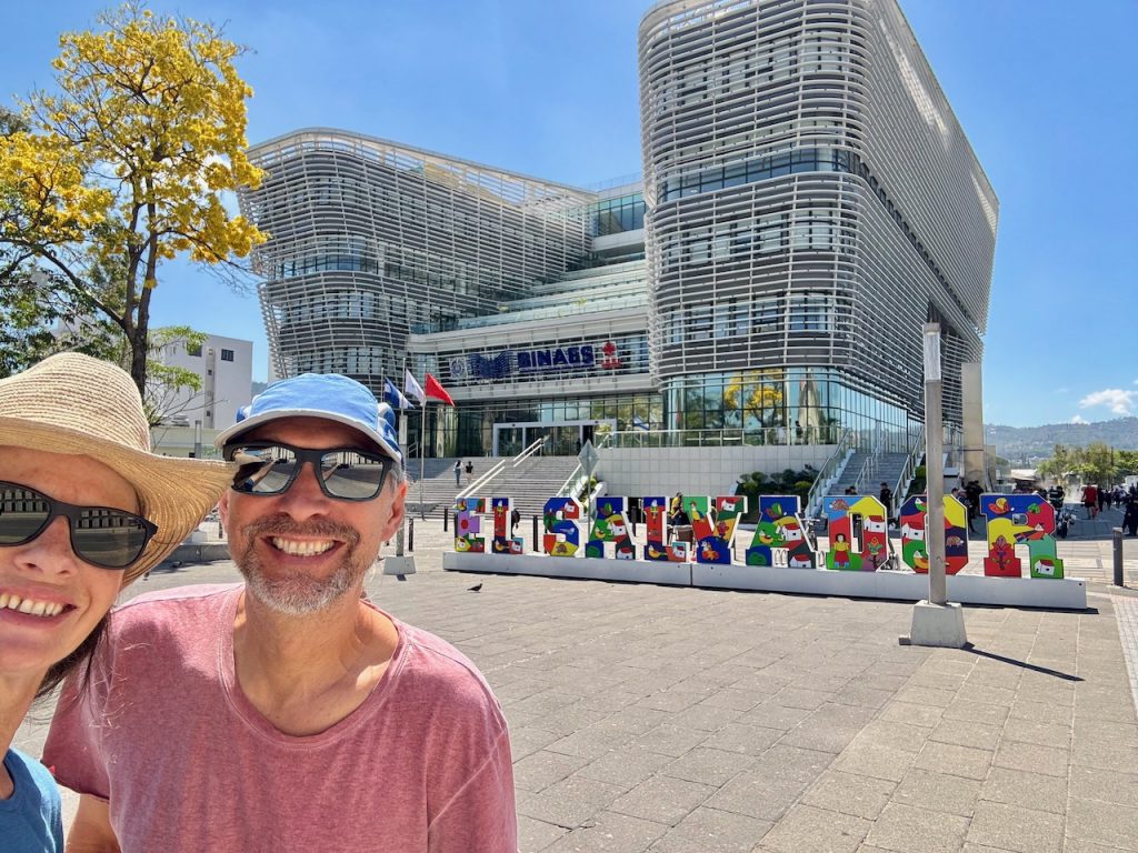 Wir stellen uns etwas außerhalb von San Salvador in die Berge zur Finca Utatlan. Wieder sind wir die einzigen Besucher und es ist einfach nur schön. Von hier aus erkunden wir den Mirador und das dortige Pupusaangebot. Wir werden weder von der Aussicht noch kulinarisch enttäuscht. Mit Uber fahren wir in die Innenstadt und erkunden das historische Viertel von San Salvador. Selten haben wir eine so saubere und aufgeräumte Innenstadt (weltweit) gesehen und die Polizeipräsenz ist immens. Es ist alles ganz schön, mit den Kirchen, Plätzen, Nationalpalast aber irgendwie schon fast zu steril. Rund um die Plazas scheinen Straßenverkäufer verboten zu sein und uns fehlt ein wenig das echte Leben. Bemerkenswert ist die neue Bibliothek, das futuristische Gebäude bietet auf 7 Etagen für jede Altersgruppe die unterschiedlichsten Themenbereiche an. Eine unglaubliche Auswahl an Büchern aber auch riesige Spielkonsolen, Spielplätze, Ruhebereiche mit Knautschkissen und unterschiedlichsten Möbeln. Alles hochmodern … und irgendwie ziemlich leer. Wo sind die ganzen Menschen, die hier 24 Stunden sich vergnügen könnten? Verwirrt sind wir auch über die chinesische Fahne vor dem Eingang. Wir erfahren später von locals, dass die Bibliothek von China finanziert wurde, und nicht nur die Bibliothek – auch das neue Krankenhaus, das neue Stadion und vieles mehr. Das kommt nicht so gut an und wir lernen, dass viele die Bibliothek quasi boykottieren.
