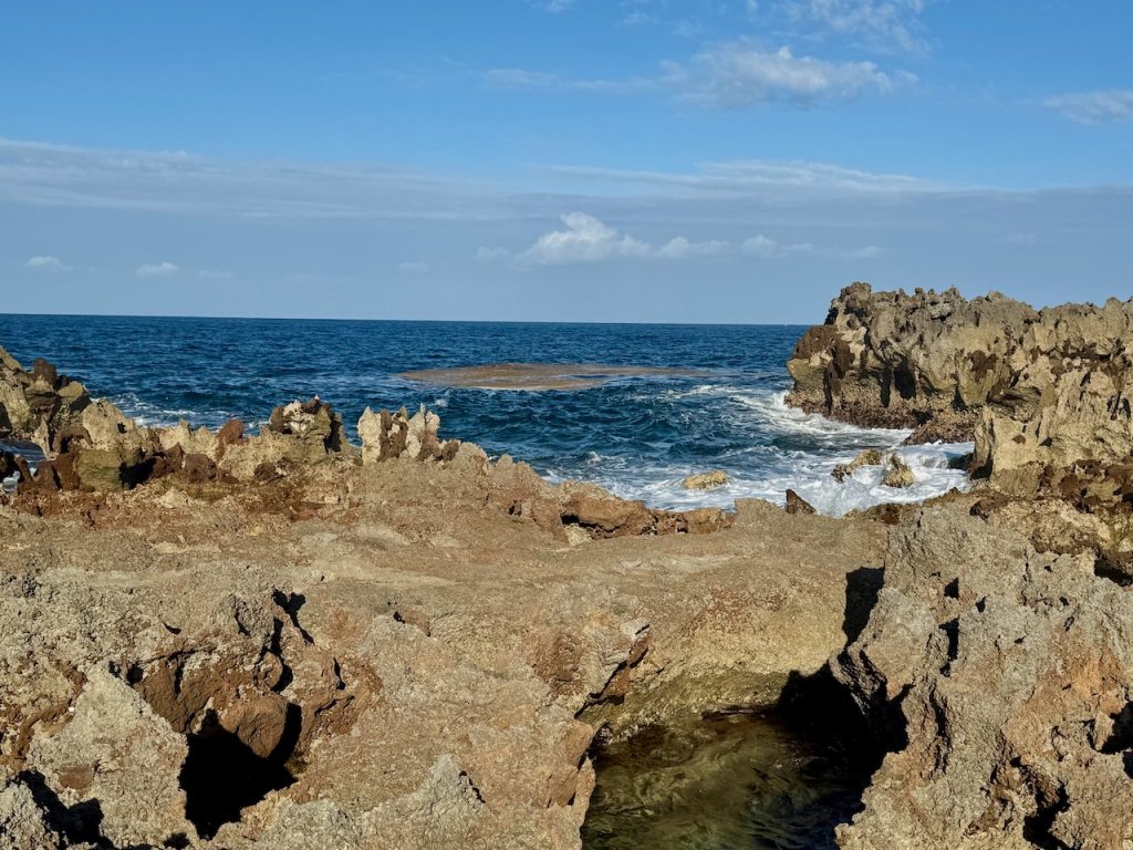 Leider ist der Verkehr in der „Innenstadt“ mit den zahlreichen TukTuks und Mopeds in den engen Gassen crazy. Sobald man sich aber ein wenig raus bewegt, ist alles ruhig. Zum Glück. Wir erkunden direkt mal den Pumpkin Hill (der einzige Hügel auf der Insel) mit seinem unglaublich dünnen Leuchtturm. Und auch die nächsten Tage, bleibt uns keine Ecke, die irgendwie zu Fuß erreichbar ist, verborgen. Wir erkunden die einzige Süsswasser Cenote der Insel und suchen ohne Erfolg das Wrack eines angeblich abgestürzten Flugzeuges. Und natürlich machen wir ausführliche Frappuccino Tests. Auch kulinarisch lassen wir uns ordentlich verwöhnen und genießen es, täglich bekocht zu werden. Doch zum Ende hin vermissen wir doch unser Essen im Ewald.