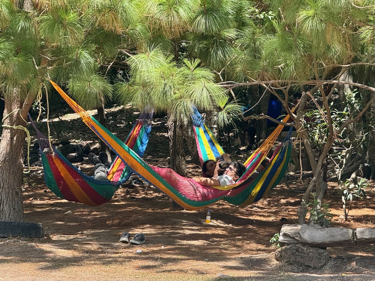 We continue our journey and have to cross a lowland area. It’s incredibly hot and humid, and we can hardly wait to get back up into the mountains. Luckily, our next destination is at about 1,200 meters, and the climate is perfect. The place is called Berlin, and there are even some Berlin bears at our campsite. We immediately take to the place and dive right in. A fair is taking place in the plaza, and the atmosphere is both peaceful and lively. We try out different restaurants and cafes and treat ourselves. Since Guatemala, we’ve been enjoying eating out much more, as the food is fantastic – eating out in Mexico just got too boring for us in the long run, since it always seems to be the same thing (with many different names).