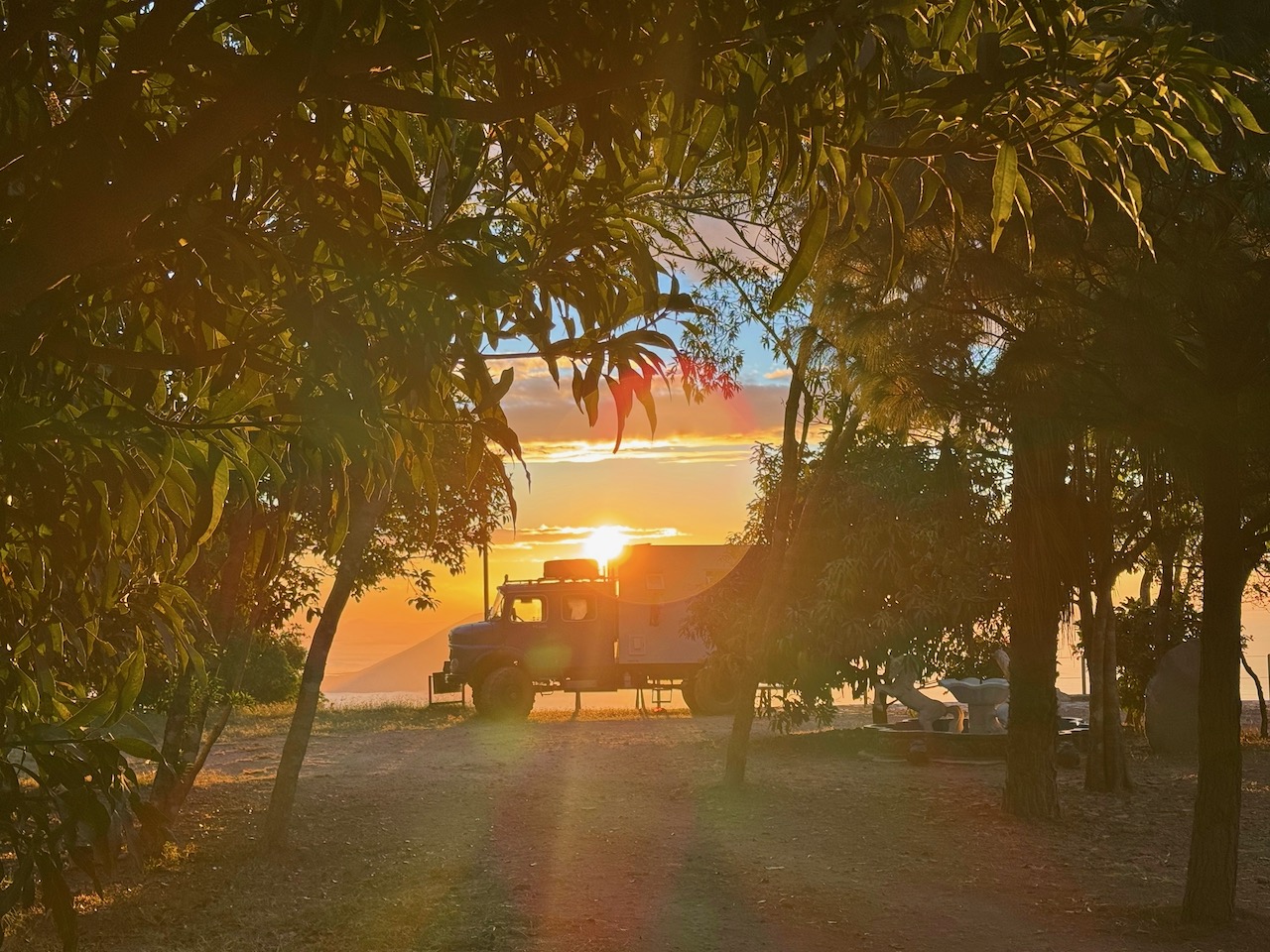 Then we turn off, and an adventurous drive begins. We have to conquer 8 km of sometimes treacherous track with an elevation gain of 1,200 m. In first gear, low range, Ewald masters the gradients, some exceeding 20 percent, with flying colors. At first, I (Sandie) am skeptical whether we’ll even make it – it’s so incredibly steep that I almost feel sick. But Karsten and Ewald stay cool, or at least pretend to – HA! But we make it, of course. And up at the Mirador „Fin del Mundo“ (Finest of the World) is simply indescribable. We stay for two nights and experience fantastic sunrises and a truly magical time up here. It’s midweek, and we practically have the Chonchagua Volcano all to ourselves. The view of the islands and three countries – El Salvador, Honduras, and Nicaragua – is breathtaking. Just look at the pictures.