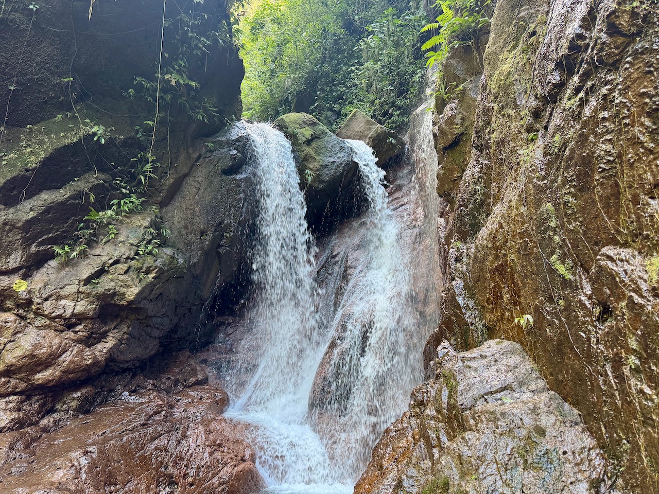 Unfortunately, Roman isn’t home himself, but the security guard lets us in, and we spend a quiet night. Fantastic. We continue on to Cerro Azul National Park. A cloud forest at an altitude of about 1000 meters, and the climate is wonderful. We still have to cover ourselves with a thin blanket almost every night. Yippee! When we arrive, it’s Sunday, and the parking lot is full. But we find a great spot on a green meadow, and from that evening onward, and for the next few days, we practically have the park to ourselves again. Every now and then, we chat with locals at the restaurant and get some tips. We also feel welcome in Honduras. The people are kind and helpful. Traveling isn’t difficult in these countries – at least that’s how it seems to us. We’re thoroughly enjoying the park, going on several hikes, and jumping into the cold water under the waterfall. It’s a very pleasant time.