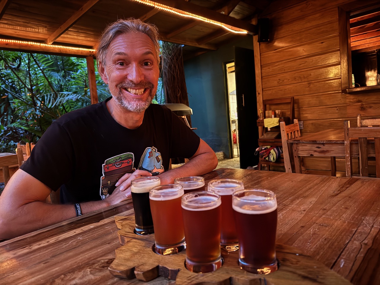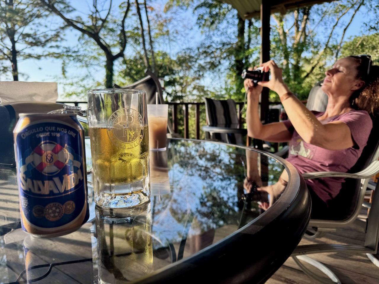 We drive another 25 km along Lago de Yojoa. We actually wanted to park in an eco-park… but access is definitely impossible for Ewald. Several things block our way: numerous very low-hanging power lines and various trees. Over the past few weeks, we’ve repeatedly realized how glad we are that Ewald is only a mere 3.4 m tall. We’ve met travelers with vehicles nearly 4 m high, and they definitely wouldn’t have been able to reach many of the places we’ve been. But even we, with our petite Ewald, are thwarted here. So we drive back a bit and find a spot at a brewery (not bad at all!). The entrance to the parking lot is also incredibly narrow, but Ewald manages to squeeze through. And the best thing, besides the beer, is that they have fantastic hot (!) showers. Wonderful… we haven’t enjoyed a proper hot shower in ages. Of course, we also have a hot shower in Ewald – but if other showers are available, we usually use them. And most of the time, they’re cold showers, which isn’t so bad given the temperatures here.