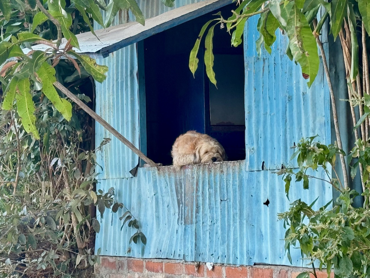 Wir fahren weiter nach Sacacoyo und treffen dort, auf einer wunderschönen Finca, wieder auf Pat und Neil. Elli und ihr Mann haben hier ein kleines Paradies für Reisende geschaffen mit einem wunderschönen Freisitz mit Blick ins heiße Tal. Hier auf 650 m Höhe weht immerzu eine Brise und es lässt sich gut aushalten. Wir dürfen die Waschmaschine nutzen und Luna, die 3 Monate alte „Rattenfängerin“ ist immer zugegen. Dank Neils Wagenheber gelingt es uns hier auch die Räder zu rotieren. Nach einem halben Tag und ganz ohne zu Fluchen ist die Sache erledigt. Unglaublich. Wir verbringen ein paar gemütliche Tage auf der Finca und mögen auch das kleine Örtchen. Hier essen wir auch unsere ersten Pupusas … DAS Nationalgericht von El Salvador. Es handelt sich dabei um Teigtaschen, meist aus einer Mischung aus Mais- und Reismehl, gefüllt mit Käse und allen möglichen anderen Zutaten, die gebraten werden und mit einer Salsa und Krautsalat serviert werden. Sehr lecker. Unsere Lieblingspupusas, sind die mit Spinat und Knoblauch aber auch alle anderen sind äusserst schmackhaft und stopfend.