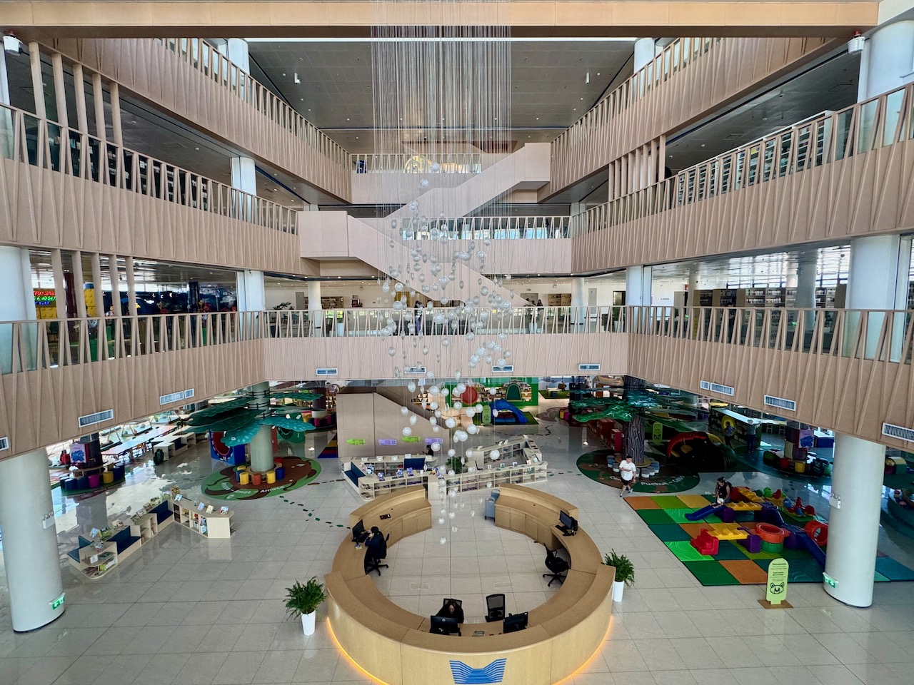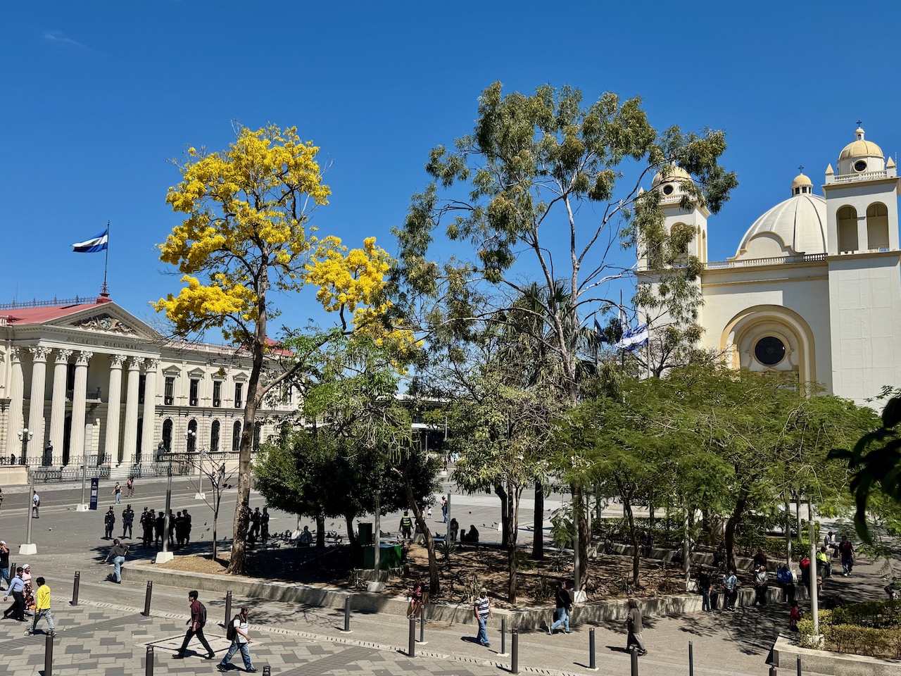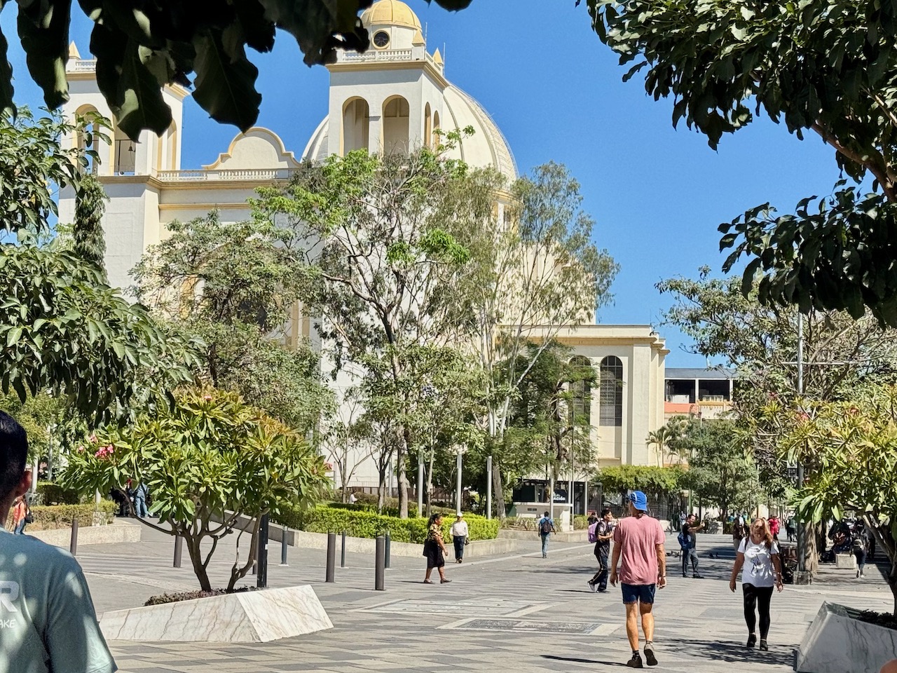 We parked at Finca Utatlan, a little outside of San Salvador, in the mountains. Once again, we were the only visitors, and it was simply beautiful. From there, we explored the Mirador viewpoint and the pupusa (a type of snack) on offer. We weren’t disappointed by either the view or the food. We took an Uber into the city center and explored San Salvador’s historic district. We’ve rarely seen such a clean and tidy city center (anywhere in the world), and the police presence was immense. It’s all quite beautiful, with the churches, squares, and National Palace, but somehow it feels almost too sterile. Street vendors seem to be banned around the plazas, and we miss a bit of real life. The new library is remarkable; the futuristic building offers a wide variety of themed areas for all age groups across seven floors. There’s an incredible selection of books, but also huge game consoles, playgrounds, and quiet areas with squishy cushions and all sorts of furniture. Everything is ultramodern… and somehow quite empty. Where are all the people who could be enjoying themselves here 24 hours a day? We’re also puzzled by the Chinese flag in front of the entrance. We later learn from locals that the library was financed by China, and not just the library—the new hospital, the new stadium, and much more as well. This doesn’t go down well, and we learn that many people are essentially boycotting the library.