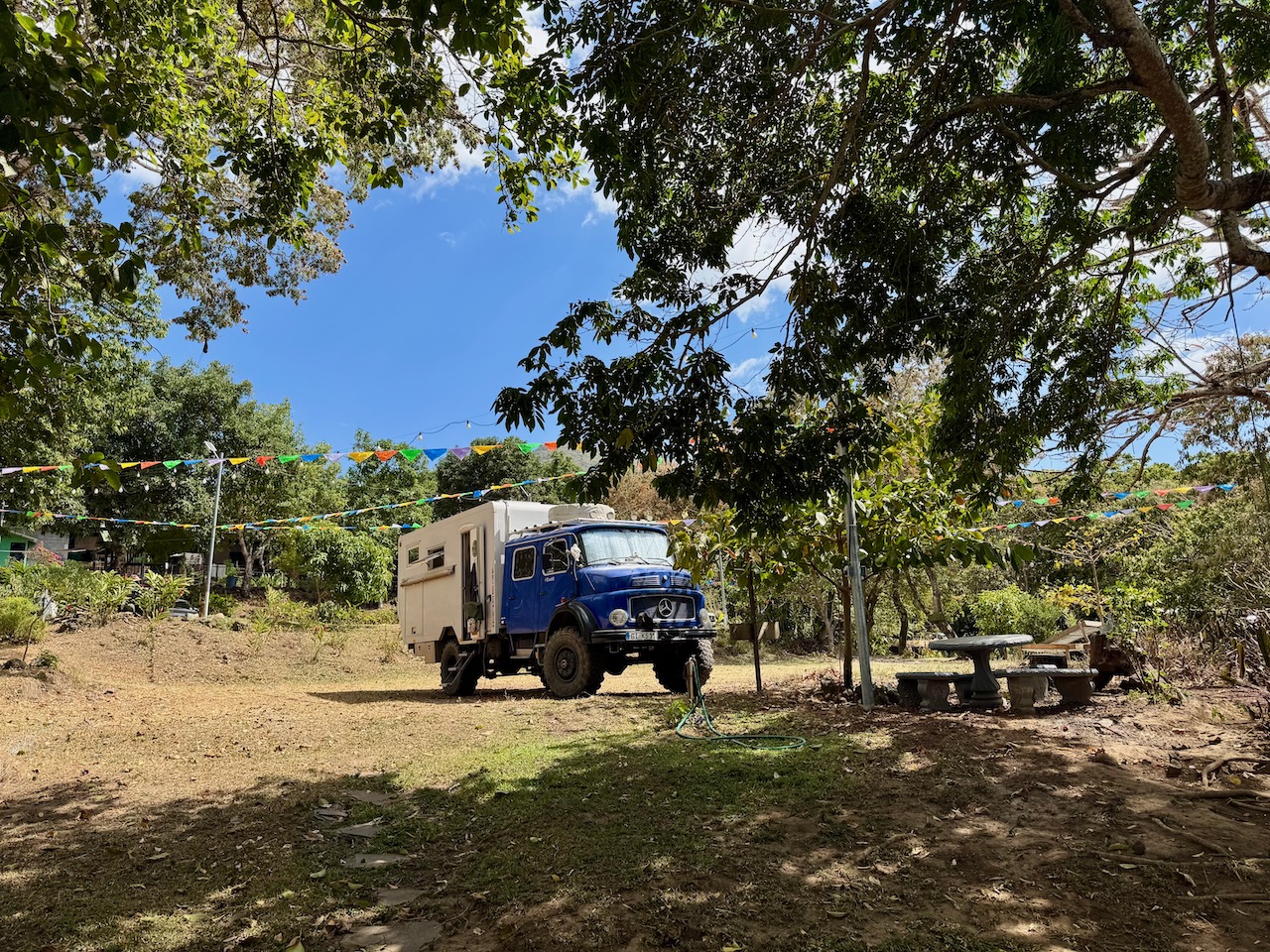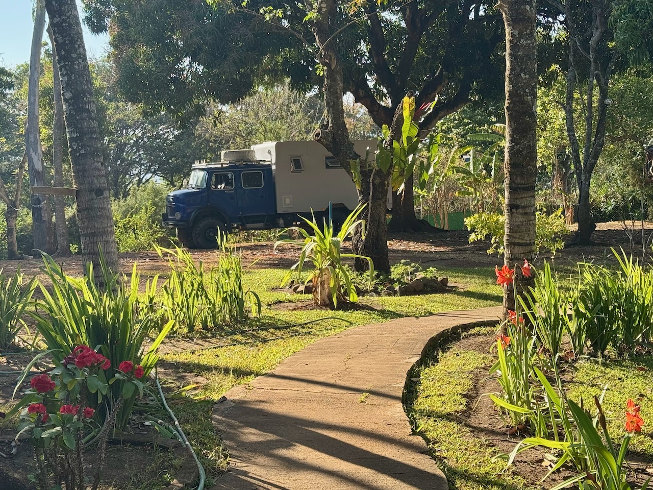 It rains on and off, but that’s not so bad, since the rain thankfully is warm. However, after the second night, when it becomes more persistent and heavier, we decide to move on. We want to go to San Pedro Sula and stop at a brewery there – we’ve really taken a liking to them. But the town is sprawling, it’s raining heavily, and to top it all off, we miss the turnoff to the brewery… so we decide on the spur of the moment to just keep going. Walking around in the mud isn’t exactly fun. After another pleasant 90 km, we arrive in Tela, on the Caribbean coast, where we can park in a gated community right on the beach. We briefly explore the beach again and then snuggle up in Ewald.