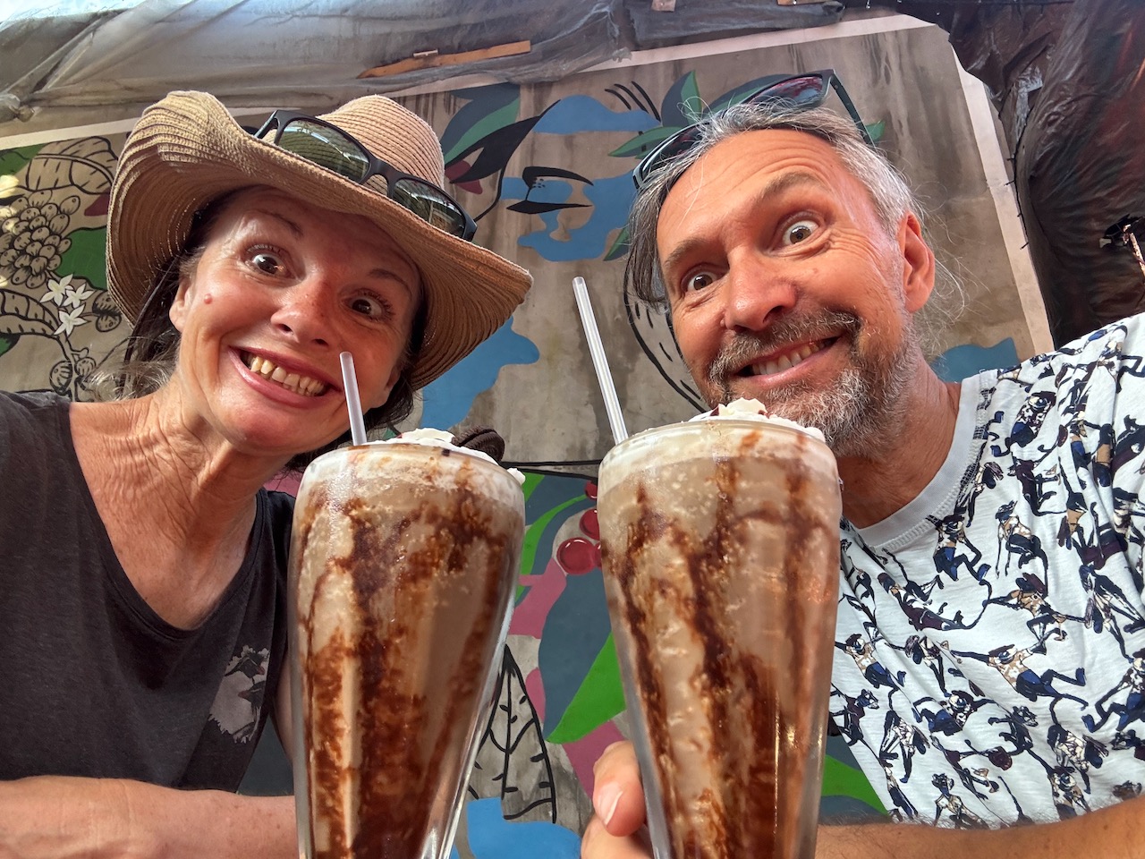 Bei Temperaturen um 35°C lechzen wir nach einem Milchshake. Mittlerweile ist es ordentlich heiß und wir werden belohnt. Eine schöne Wanderung und nach knapp 18 Kilometers kommen wir wieder glücklich bei Ewald zuhause an.