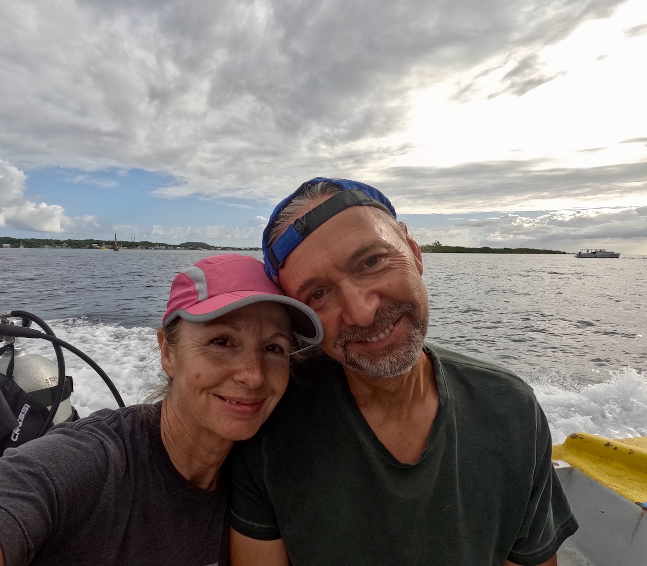 After leaving Tela we drive on to La Ceiba. There, we park right by the ferry terminal. The guarded parking lot belongs to the ferry company, is free, and even better, we’re allowed to stay there the night before our ferry crossing. After a peaceful night, our security guard, Oscar, kindly takes our bags to the ferry, and just an hour later we land on Utila. Our hotel, room, pool, and dive center make a great impression, and we immediately feel very comfortable.