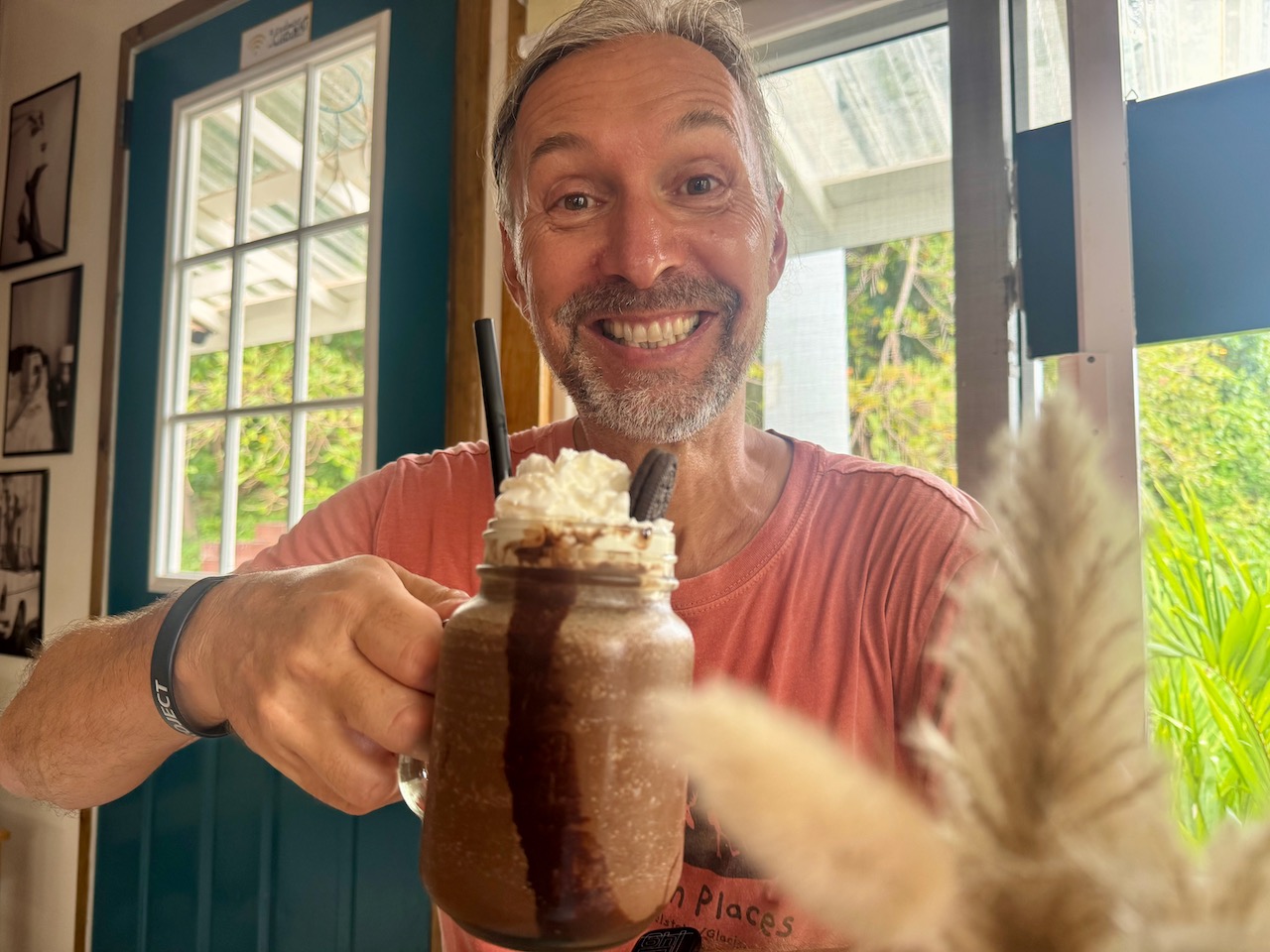 Leider ist der Verkehr in der „Innenstadt“ mit den zahlreichen TukTuks und Mopeds in den engen Gassen crazy. Sobald man sich aber ein wenig raus bewegt, ist alles ruhig. Zum Glück. Wir erkunden direkt mal den Pumpkin Hill (der einzige Hügel auf der Insel) mit seinem unglaublich dünnen Leuchtturm. Und auch die nächsten Tage, bleibt uns keine Ecke, die irgendwie zu Fuß erreichbar ist, verborgen. Wir erkunden die einzige Süsswasser Cenote der Insel und suchen ohne Erfolg das Wrack eines angeblich abgestürzten Flugzeuges. Und natürlich machen wir ausführliche Frappuccino Tests. Auch kulinarisch lassen wir uns ordentlich verwöhnen und genießen es, täglich bekocht zu werden. Doch zum Ende hin vermissen wir doch unser Essen im Ewald.