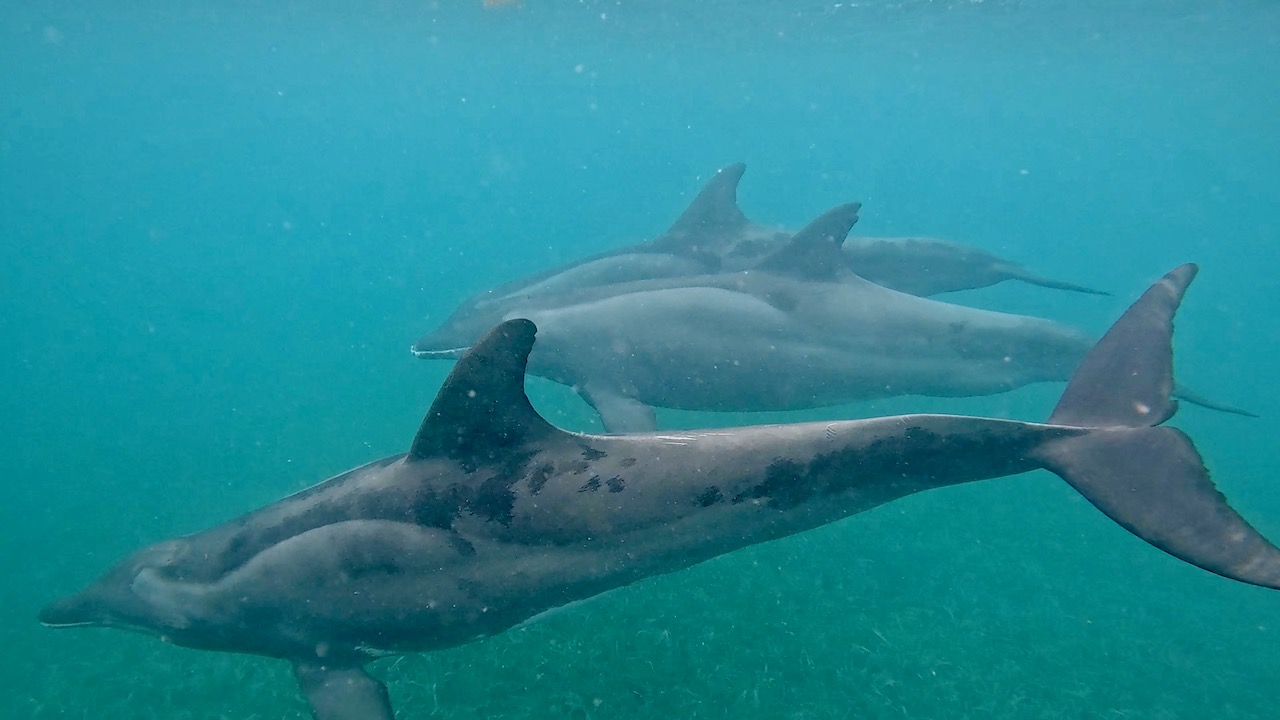 The diving doesn’t initially impress us that much. Of course, the underwater landscapes are fantastic, and the visibility is truly exceptional. But we wonder where all the fish are. We’re probably just too spoiled. However, things improve significantly on the second day of diving, starting with snorkeling with rough-toothed dolphins. They come right up to us and stay close for a very long time. Simply a fantastic experience. And the dives are also very beautiful, with dancing eagle rays and many other wonderful sightings. So we revised our opinion. The diving here is indeed beautiful – even if we had one or two slightly less exciting dives.