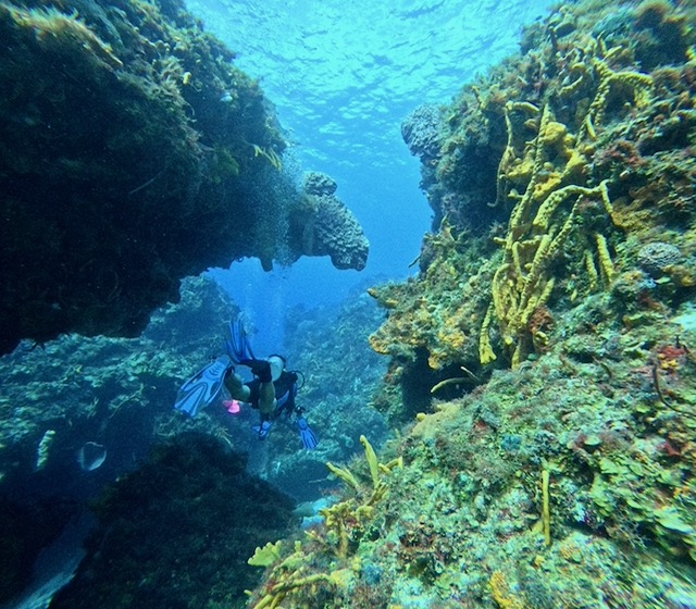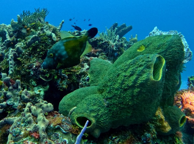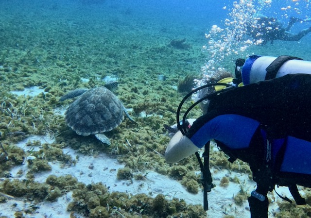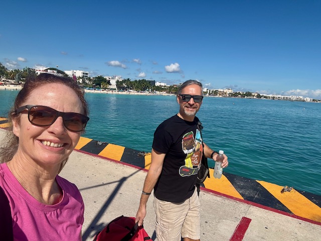 After a night in Cancun at an airport hotel with a surprisingly good breakfast, we drive to Playa del Carmen, catch the ferry, and after another taxi ride, arrive at our resort. It’s not really our usual style, but we really appreciated this relatively small resort with its fantastic diving last year, so we booked it again without hesitation.