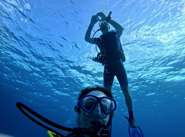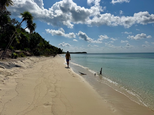 We enjoy 10 fantastic days and are absolutely spoiled with the food and diving. It’s amazing – no wonder so many guests keep coming back. And the climate is just so good for us – it’s warm, and from the very first minute in Mexico, we’re only going barefoot or wearing flip-flops. It feels so good not having to think too much about what to wear in the morning and just putting on shorts and a t-shirt. We’ve finally said goodbye to layering! And then the sun – it’s already light at 7 a.m., and we enjoy the sunshine until around 6:30 p.m. Besides diving, we go running every day, walk on the sandy beach, cycle, enjoy our cocktails daily, and the fantastic food.