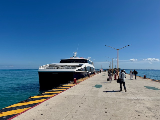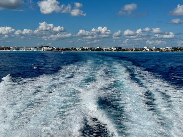 Nach einer Nacht in Cancun in einem Flughafen Hotel mit erstaunlich gutem Frühstück, fahren wir nach Playa del Carmen, dort nehmen wir die Fähre und nach einer weiteren Taxifahrt sind wir in unserem Resort. Das ist ja eigentlich gar nicht so unser Ding – aber wir haben dieses relativ kleine Resort mit den großartigen Tauchgelegenheiten letztes Jahr schon sehr geschätzt und daher kurzerhand wieder gebucht.