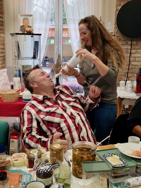 The next highlight is Klaus’s birthday in December. He’s turning 80, and that calls for a proper celebration. We’re always amazed at how things like this work in small towns. A week before the birthday, Ursula and Klaus placed a small announcement in the local newspaper, and on the actual birthday, starting at 10 a.m., over 80 people come to congratulate, eat, drink, talk, and have fun together. Simply wonderful. The day is relaxed, with one meal following another. As always, we were thoroughly spoiled here, and also in Holland and by our friends—so we fly back to Mexico with a few extra kilos and hopefully won’t have any „weight issues“ on the plane. Ha!