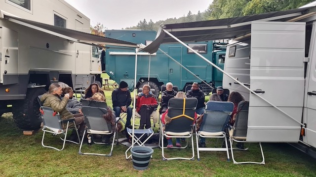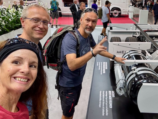 Dann, nach nur 2 Wochen in heimischen Gefilden, gefüllt mit einigen Routine-, Aufräum-, Wartungs- und Hausarbeiten, juckt es uns in den Füßen und wir ziehen erst mal wieder mit Horst los. Wir treffen uns mit Uschi und Peter und besuchen dann gemeinsam die Caravan Messe in Düsseldorf. Dort waren wir schon sehr lange nicht mehr. Es war interessant, jedoch nicht umwerfend … so richtig viel tut sich auf dem Markt nicht und uns haben echte Innovationen gefehlt. Erstaunt waren wir über die Preise, die mittlerweile so aufgerufen werden. So kosten die Sprinter gerne über 250 Tausend Euro und einer sollte sogar 420 Tausend kosten – ein Sprinter! Total verrückt!