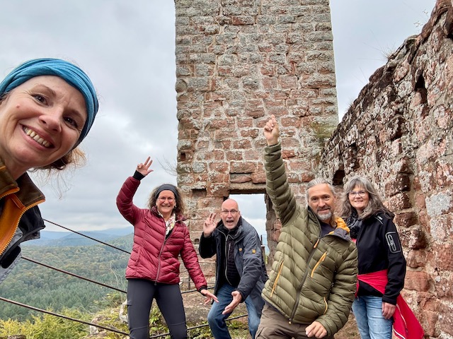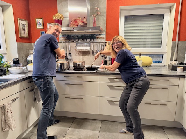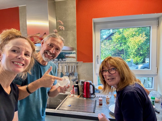 Und endlich treffen wir uns (wieder) mit unseren lieben Freunden in der Bremendell in Lothringen (Frankreich). Nachdem es letztes mal im Oktober ziemlich frisch war, dachten wir uns – im September wird es bestimmt wettertechnisch viel besser. Doch weit gefehlt. Am Ankunftstag hatten wir Dauerregen – das konnten wir uns nur noch schön trinken. Die nächsten Tage hat es zum Glück nicht mehr geregnet, doch war es herbstlich frisch. Die Temperaturen sind nix mehr für uns und ohne lange Unterhosen und Grönlandjacke halten wir es draußen nicht aus. Und doch ist es wie immer einfach zauberhaft: wunderbare Weinprobe mit ekstatischer Völlerei, gemeinsames Kochen, Wandern, Spielen (Hitster macht einfach Spaß), Gespräche … vielen Dank Ihr alle.