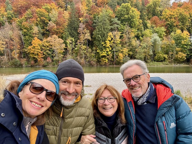 Leider haben wir uns dann aber irgendwie erkältet – könnte am Wetter liegen. So sind wir, insbesondere Sandie, bei unserem nächsten Besuch etwas hinfällig. Renate und Hans verwöhnen uns aber wieder so sehr, dass es einem einfach gut gehen muss. Renate läuft wieder zu kulinarischen Höchstformen auf und zwischendurch erkunden wir die nähere und weitere Umgebung von Geltendorf. Normalerweise fahren wir mit den zweien immer Rad – doch dafür ist das Klima dieses mal einfach nicht geeignet. Auf einem Marsch im heimischen Wald entdecken wir den Dreiherrenstein, den wollte Renate schon lange finden, und sind ganz stolz. Wir fahren auch noch nach Bad Tölz – da wollten wir seit der Serie schon immer mal hin. Eine schöne, historisch interessante Stadt. Nur den Bullen – den haben wir nicht gesehen.