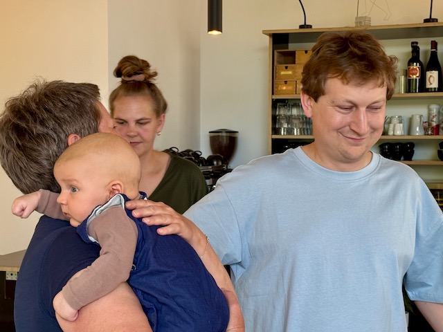 Ende des Monats August fahren wir zunächst mit Karstens Familie nach Darmstadt, um gemeinsam den 40. Geburtstag unseres Neffen Adrian zu feiern. Wir verbringen einen gemütlichen Nachmittag in Adrians Restaurant „Butter und Blume“ (ist echt einen Besuch wert) und lernen bei der Gelegenheit auch den neuen Großneffen Fritz kennen.