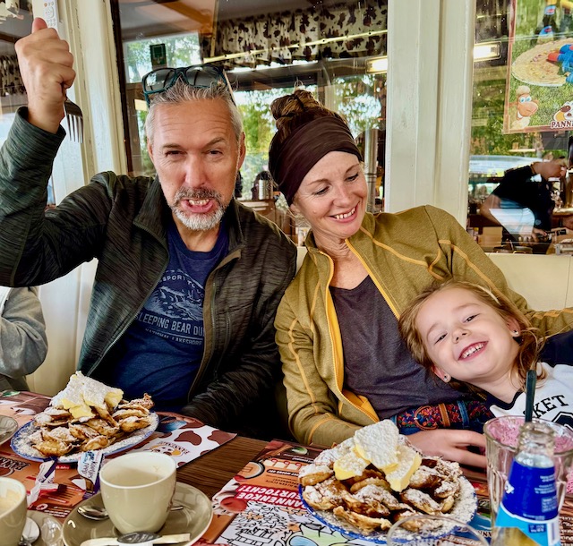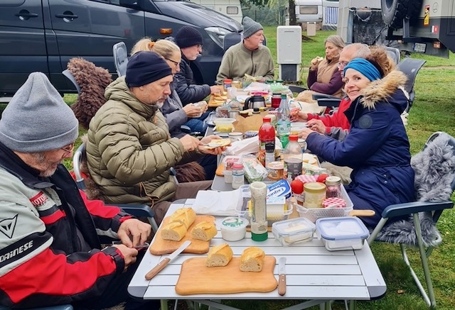 Kurze Zeit später besuchen wir die Familie in Holland. Auch hier ist alles mehr oder weniger eine sehr lieb gewonnene Routine. Wir genießen es einfach, Zeit mit der Familie zu verbringen. Wir werden kulinarisch verwöhnt und neben ein wenig shoppen feiern wir die Geburtstage von Sandies Bruder Andrew und seiner Frau Rose. Zum ersten Mal seit über 35 Jahren bleiben wir diesmal nicht mehr bei den Eltern sondern parken unseren Horst bei Ashley, Sandies Schwester. Larry und Eugenie haben vor kurzem ihre neue Wohnung bezogen, ebenerdig und super schön. Doch ist dort kein Platz mehr für uns zum Parken. Ein Wechsel zum Guten – denn unser neuer Stellplatz ist wesentlich ruhiger.